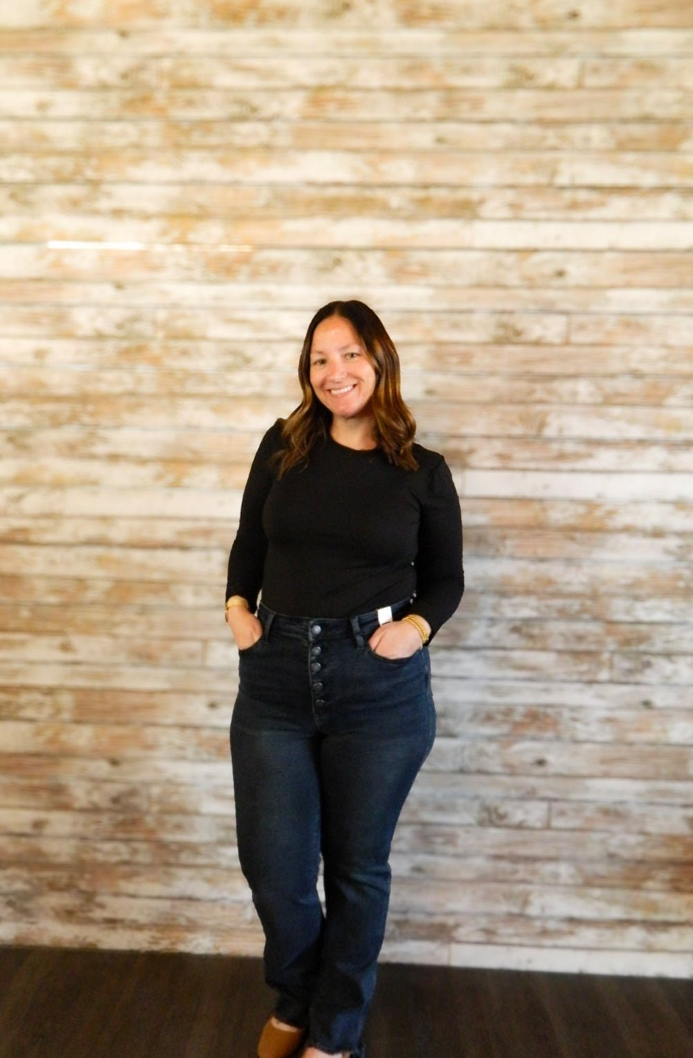 Classic meets modern in this sleek, flattering denim. Designed with a high-rise fit, these jeans smooth and shape while keeping you comfortable in Judy Blue’s signature stretch fabric. The dark blue wash offers a polished, versatile look, while the exposed button fly adds a touch of vintage-inspired charm. Perfect for pairing with everything from cozy sweaters to chic blouses, these jeans will be your go-to for both casual days and dressed-up nights.
