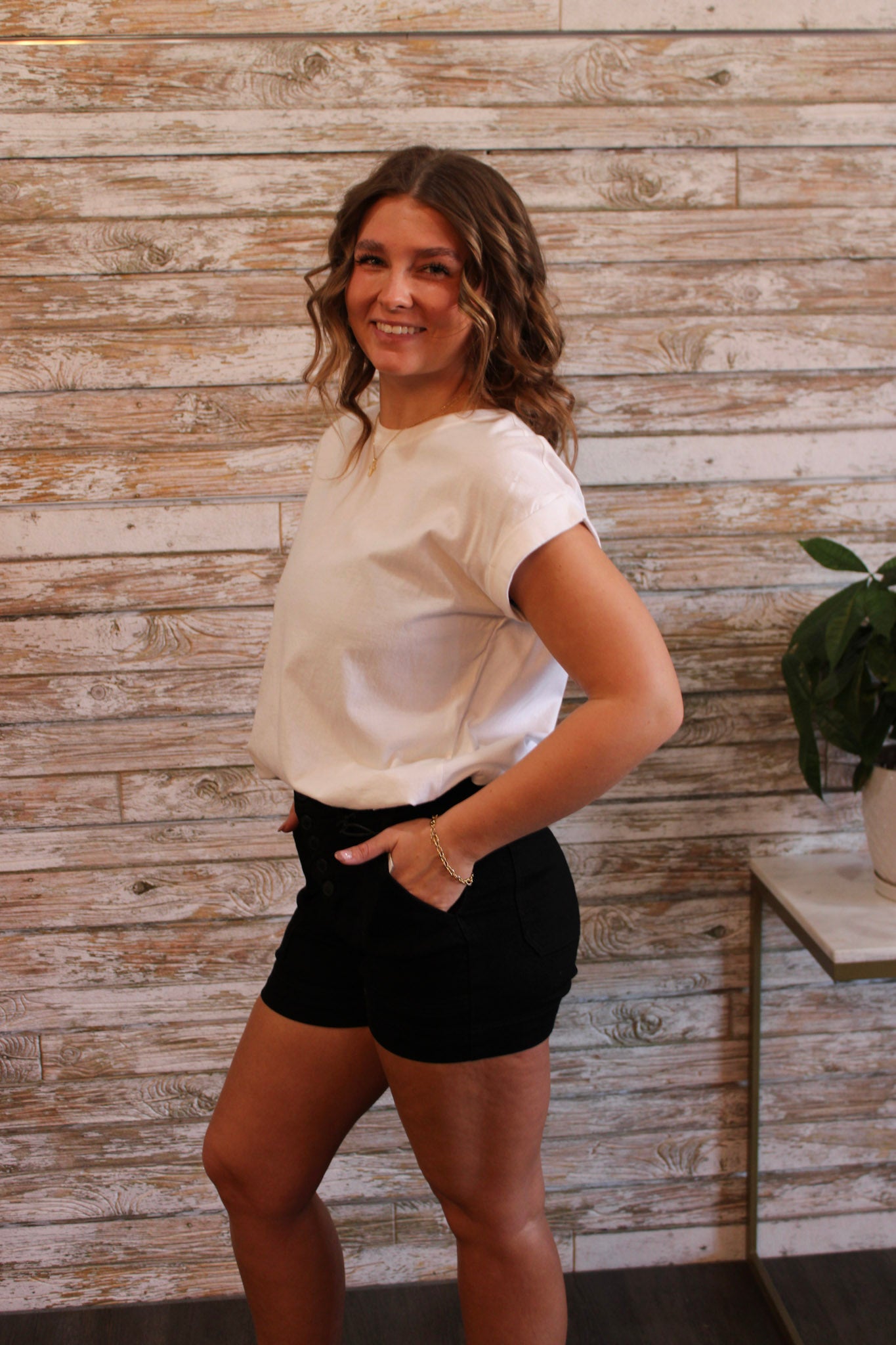 Get ready to rock your summer style with the Judy Blue Black Button Fly Shorts. These high waist shorts will give you a flattering silhouette while the button fly adds a touch of vintage charm. Perfect for any casual or dressed up look, these shorts are a must-have for any fashionista's wardrobe.