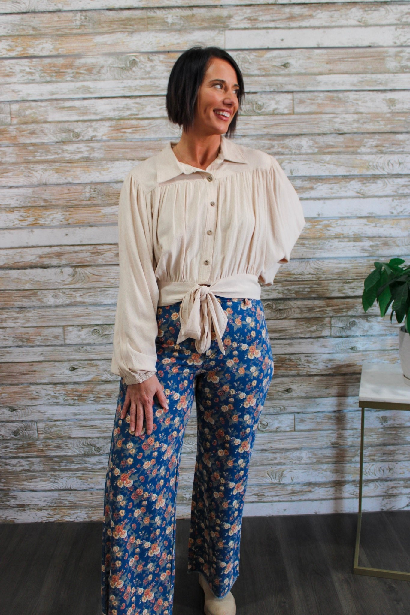 The Blossom Rise Flare Jeans combine vintage-inspired style with modern comfort. Featuring a washed floral print, high-rise fit, and flattering flare silhouette, these jeans offer a boutique-worthy statement piece for your wardrobe. Perfect for pairing with cropped tops, blouses, or sweaters, they effortlessly elevate casual outfits with a touch of feminine charm and laid-back sophistication.