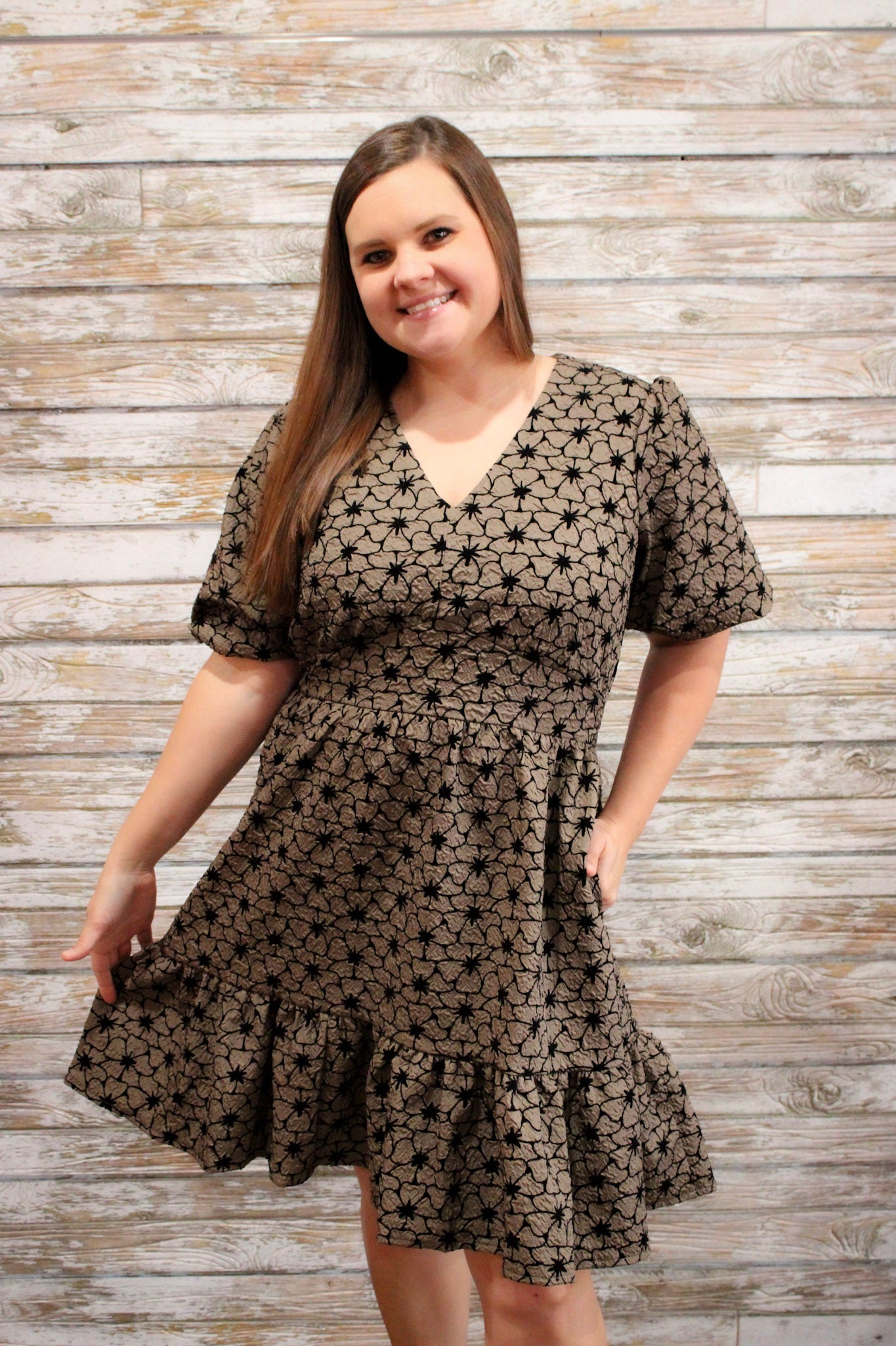 Radiate effortless charm in the Golden Hour Dress, a beautifully woven mini featuring a subtle textured jacquard design. Its flattering V-neckline and short puff sleeves create a feminine silhouette, while the elastic waistband ensures a comfortable, figure-enhancing fit. With convenient side pockets and a timeless, tailored shape, this dress is perfect for brunch dates, holiday gatherings, or any moment you want to shine with understated elegance. ✨