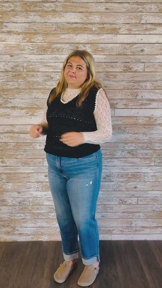 The Stitched Charm Sweater Vest is a modern twist on a timeless layer. Featuring a sleeveless design with a flattering V-neckline, this knit vest is elevated by blanket stitch detailing for a handcrafted touch. Perfect for layering over blouses, turtlenecks, or tees, it adds cozy texture and effortless style to your look—whether dressed up with trousers or kept casual with jeans.