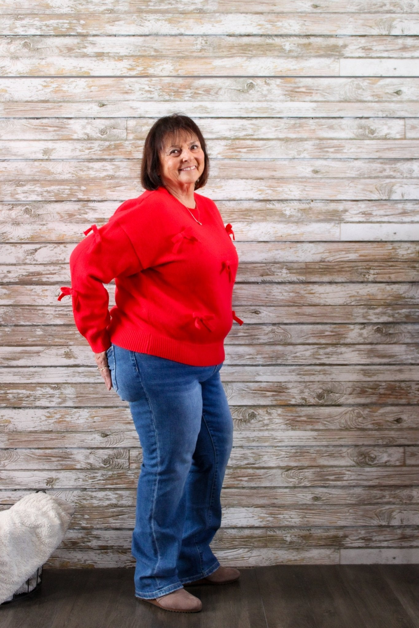 The Sweet Grace Bow Sweater brings a touch of feminine charm to your cozy days. Designed with long sleeves and a soft knit texture, this sweater features a delicate bow detail that adds a timeless, elegant finish. Perfect for pairing with jeans, skirts, or trousers, it’s a versatile piece that transitions effortlessly from work to weekend.