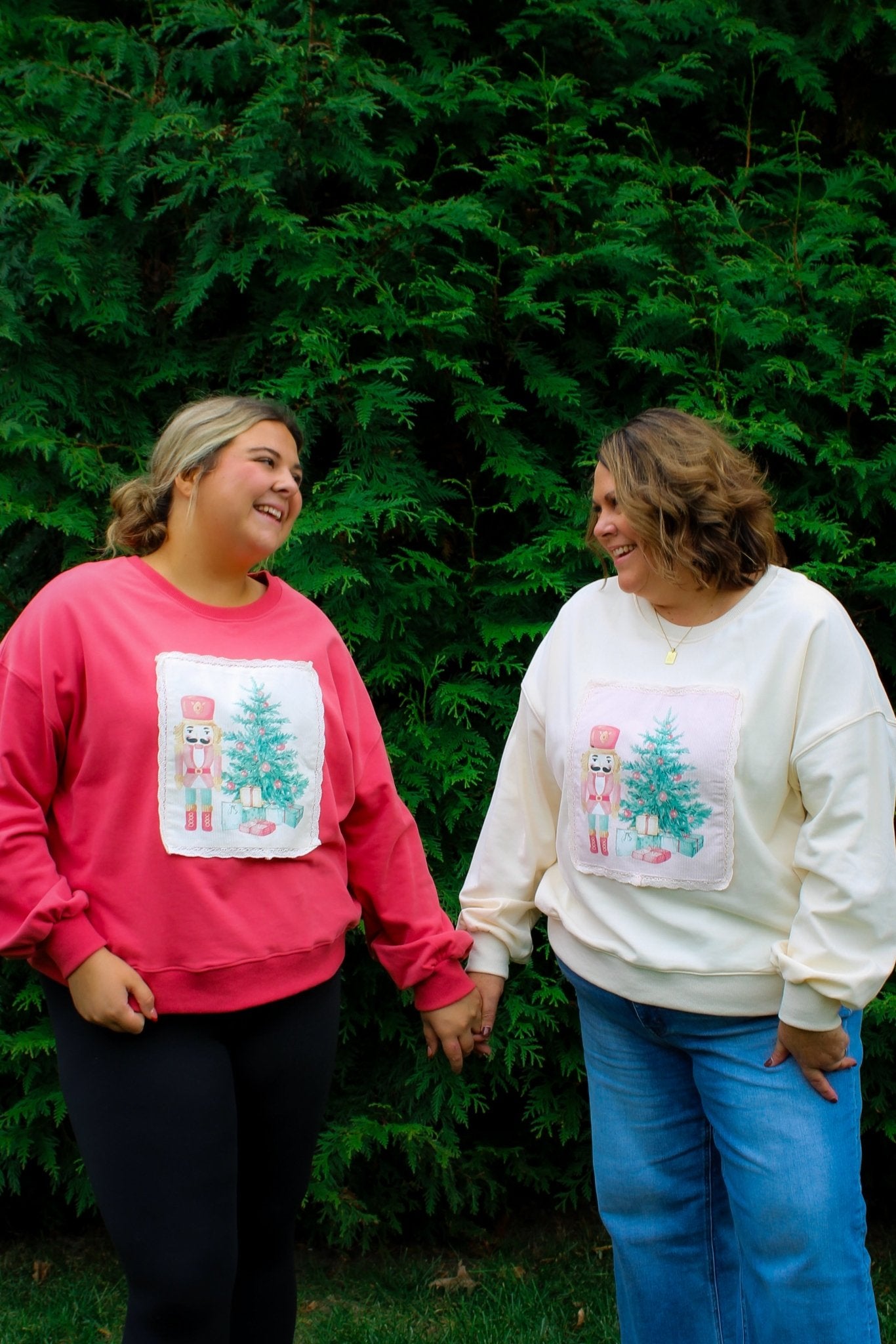Get into the holiday spirit with the Merry Stitch Christmas Sweatshirt. Made from soft, cozy fabric, this festive sweatshirt features Christmas-themed corduroy patches and scallop lace accents for a playful, seasonal touch. Perfect for holiday parties, casual winter outfits, or cozy seasonal lounging.