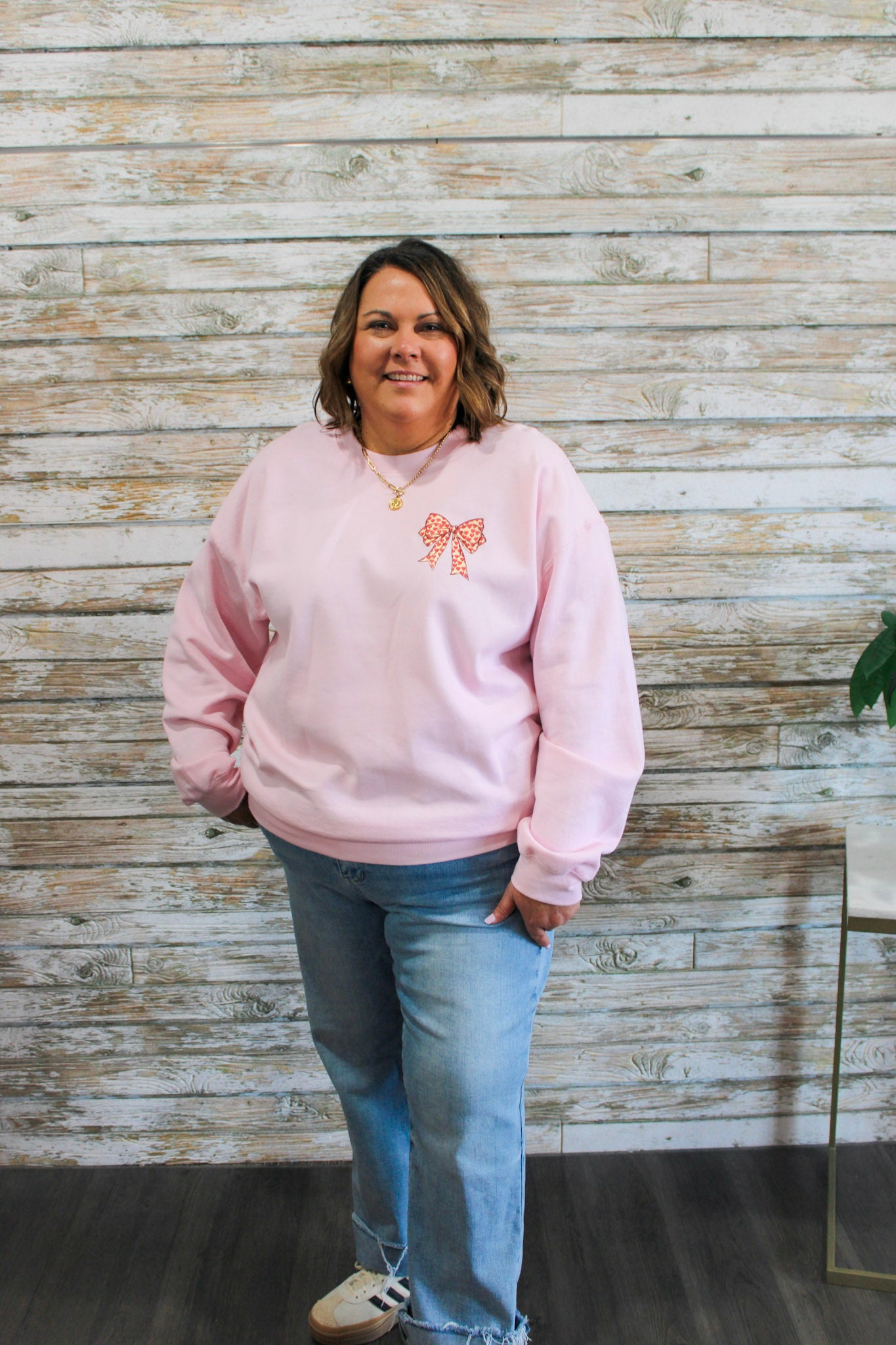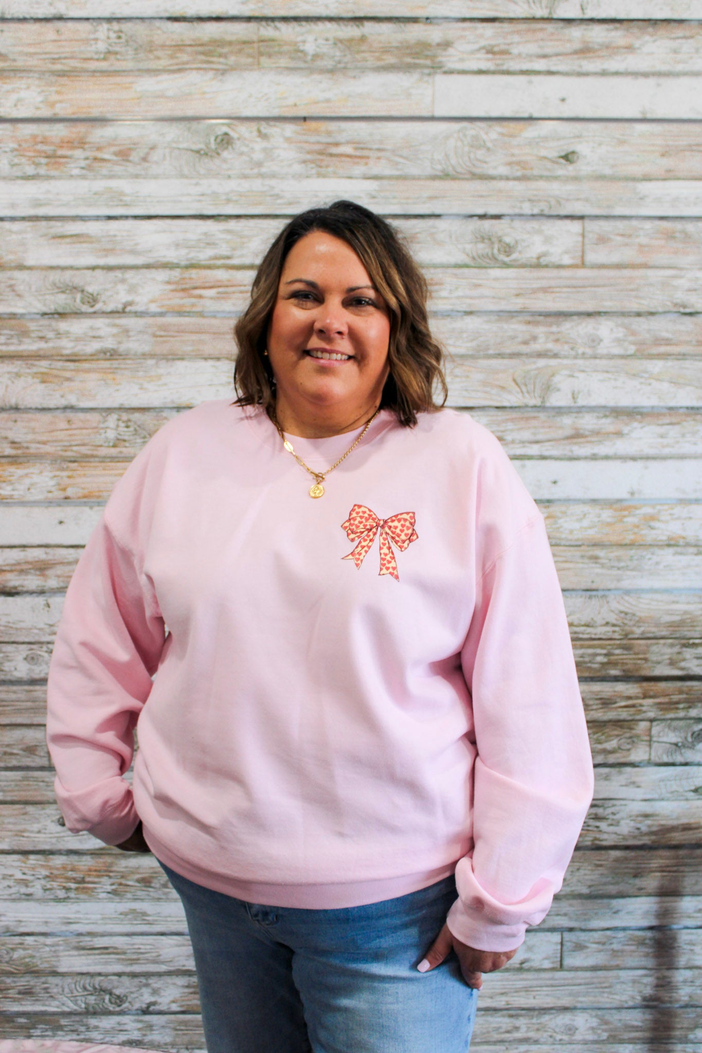 Chrissy is wearing size XL (her true to size is L/XL). Our stylists recommend choosing your true to size for a relaxed fit.