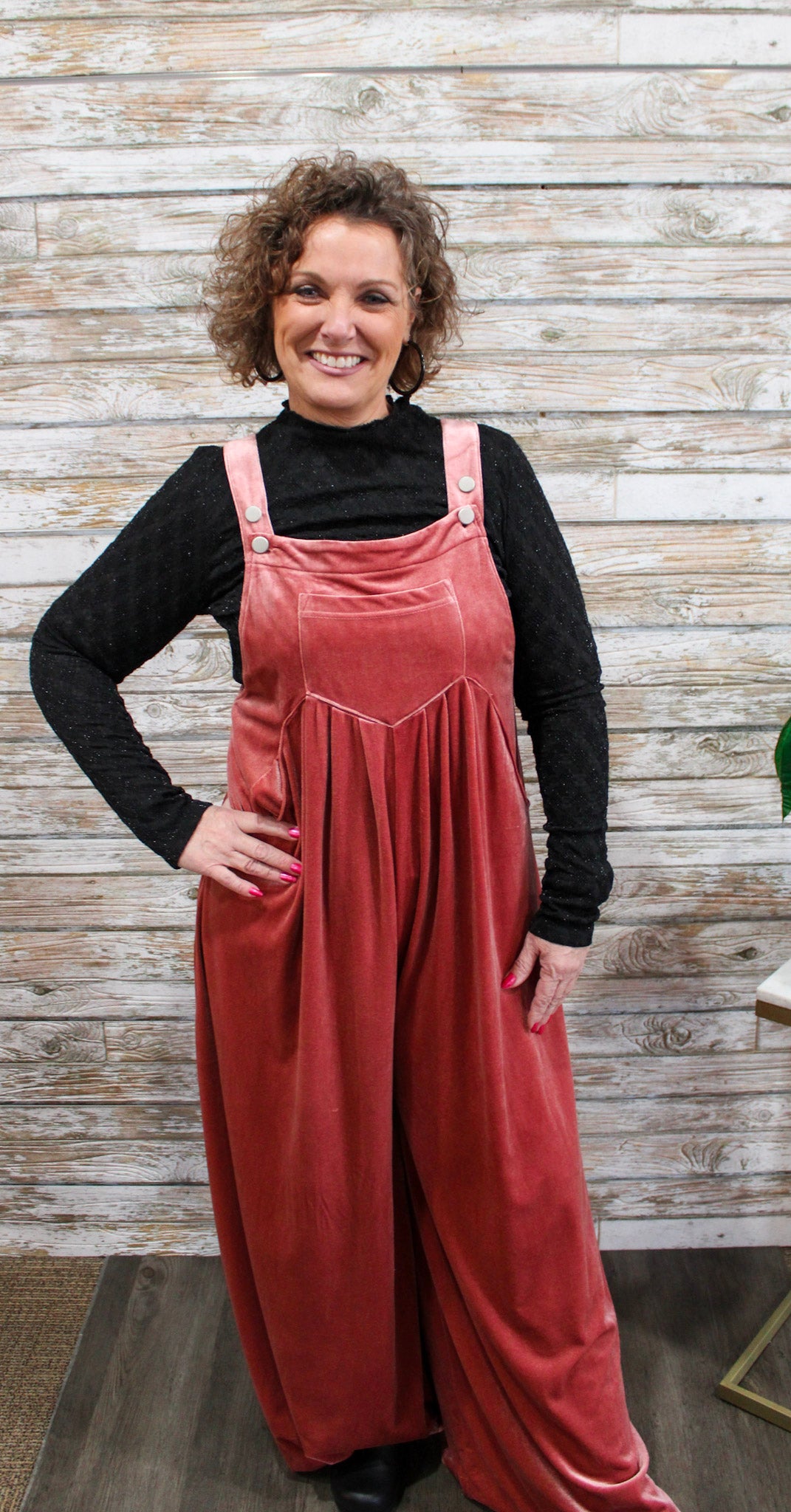 The Velvet Horizon Overalls are a luxurious twist on a classic silhouette. Featuring a wide-leg design, soft velvet fabric, and practical pockets, these overalls combine comfort with boutique-inspired style. Perfect for layering over fitted tops or blouses, they create a polished, fashion-forward look ideal for both casual and elevated occasions.