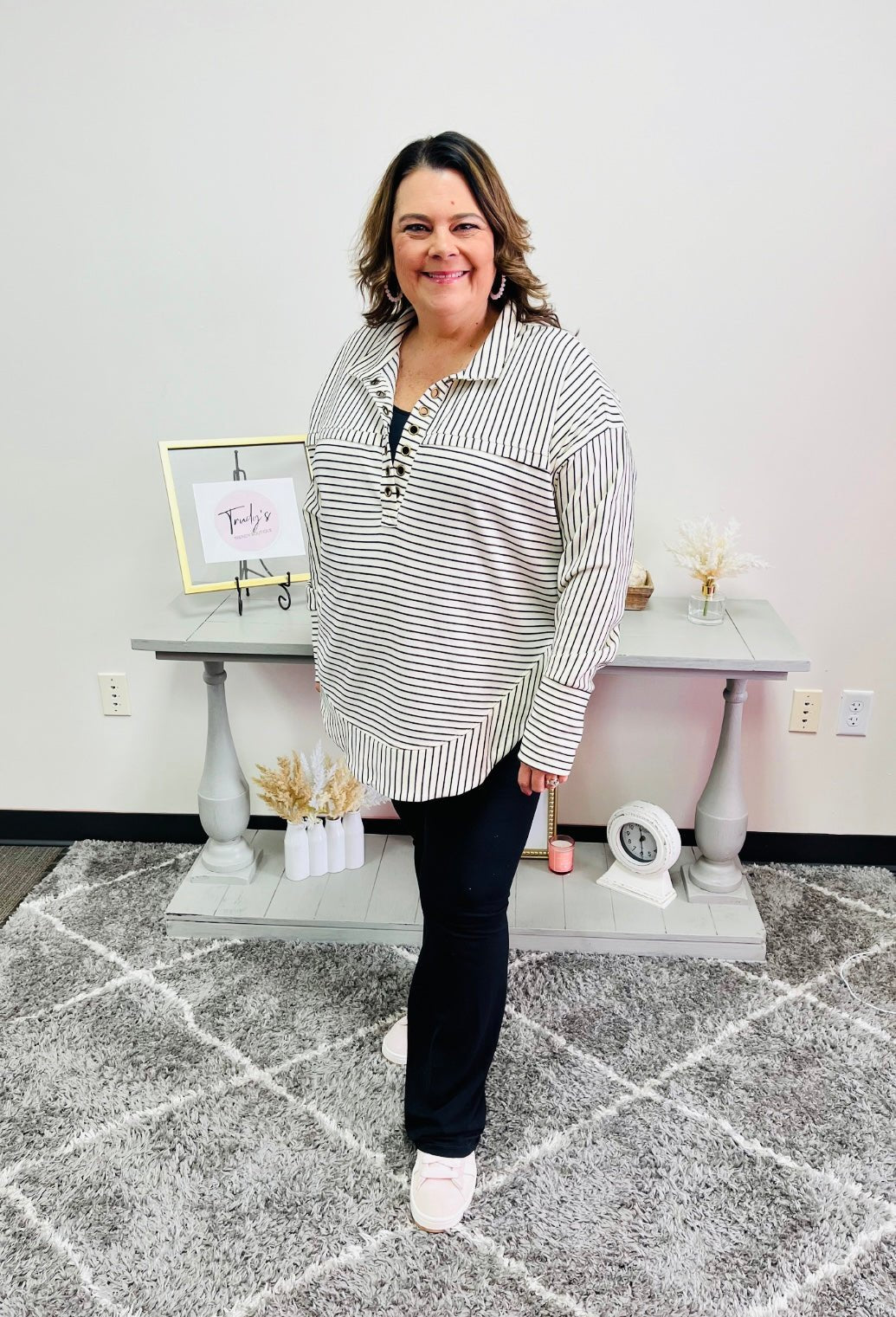 Get ready to escape the ordinary with our A Great Escape Pullover! Featuring a unique stripe design, half neck for added warmth, and thumbhole cuffs to keep your hands cozy, this pullover is perfect for any adventure. Say goodbye to boring clothes and hello to fun and functionality!