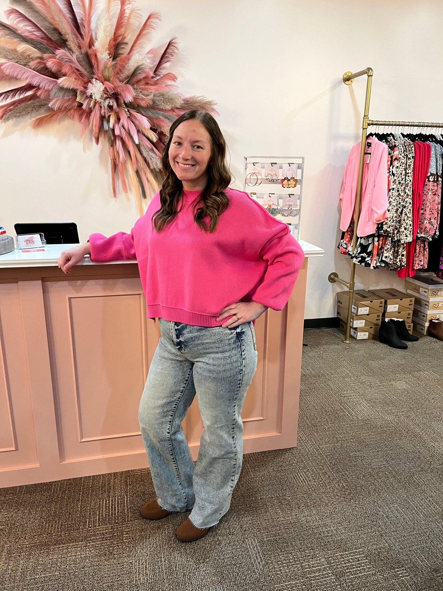 This classic bright pink sweater made with ultra soft fabric....it can be adorably yours!