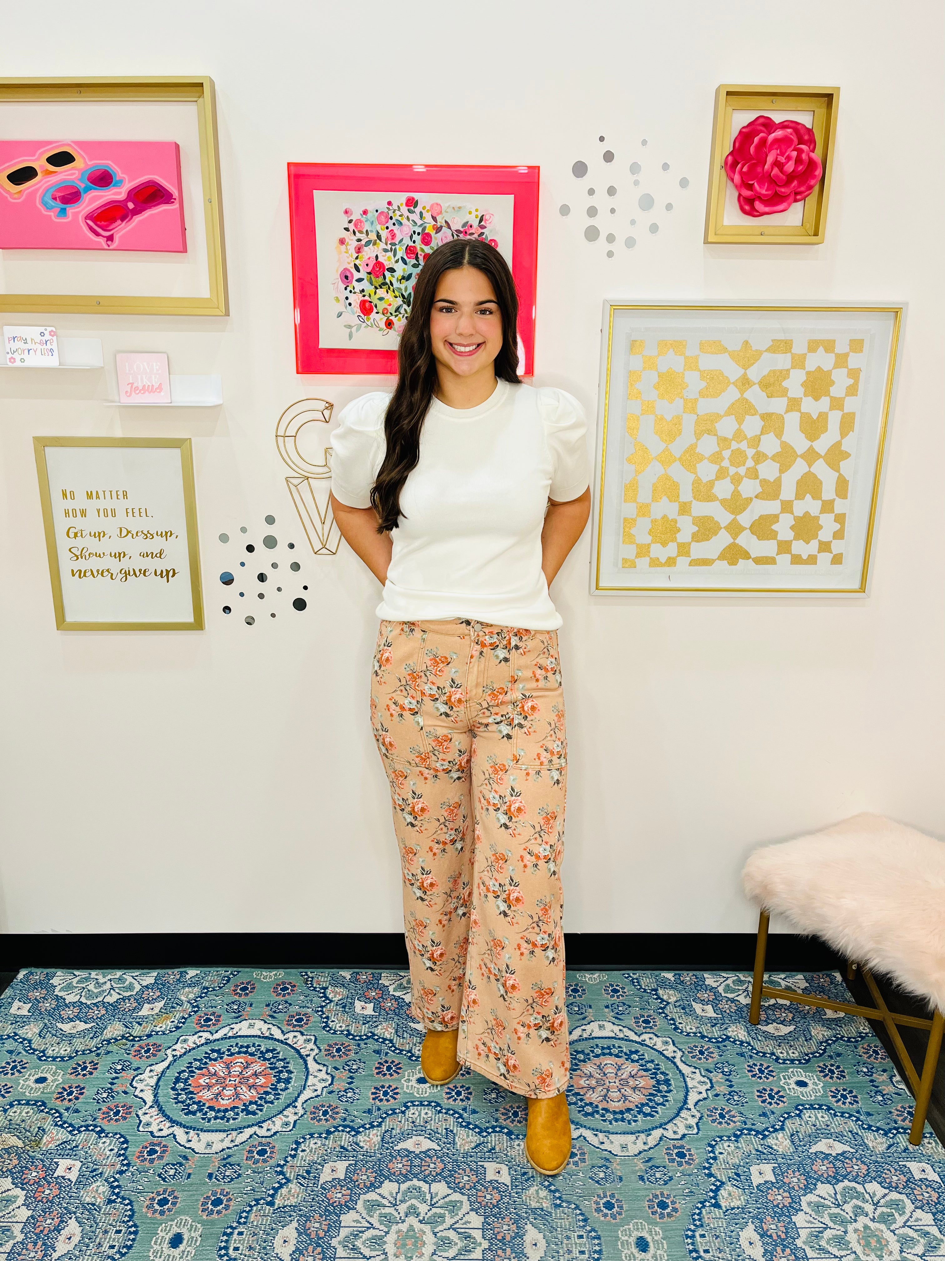 Step into effortless style with the Bloom Haven Washed Wide-Leg Jeans. Featuring a soft, mineral-washed fabric adorned with a subtle floral print, these jeans offer a relaxed, wide-leg silhouette for all-day comfort. Perfect for pairing with fitted tops or cozy sweaters, they combine casual ease with feminine charm. A versatile wardrobe staple, these jeans bring a playful, on-trend touch to everyday outfits.