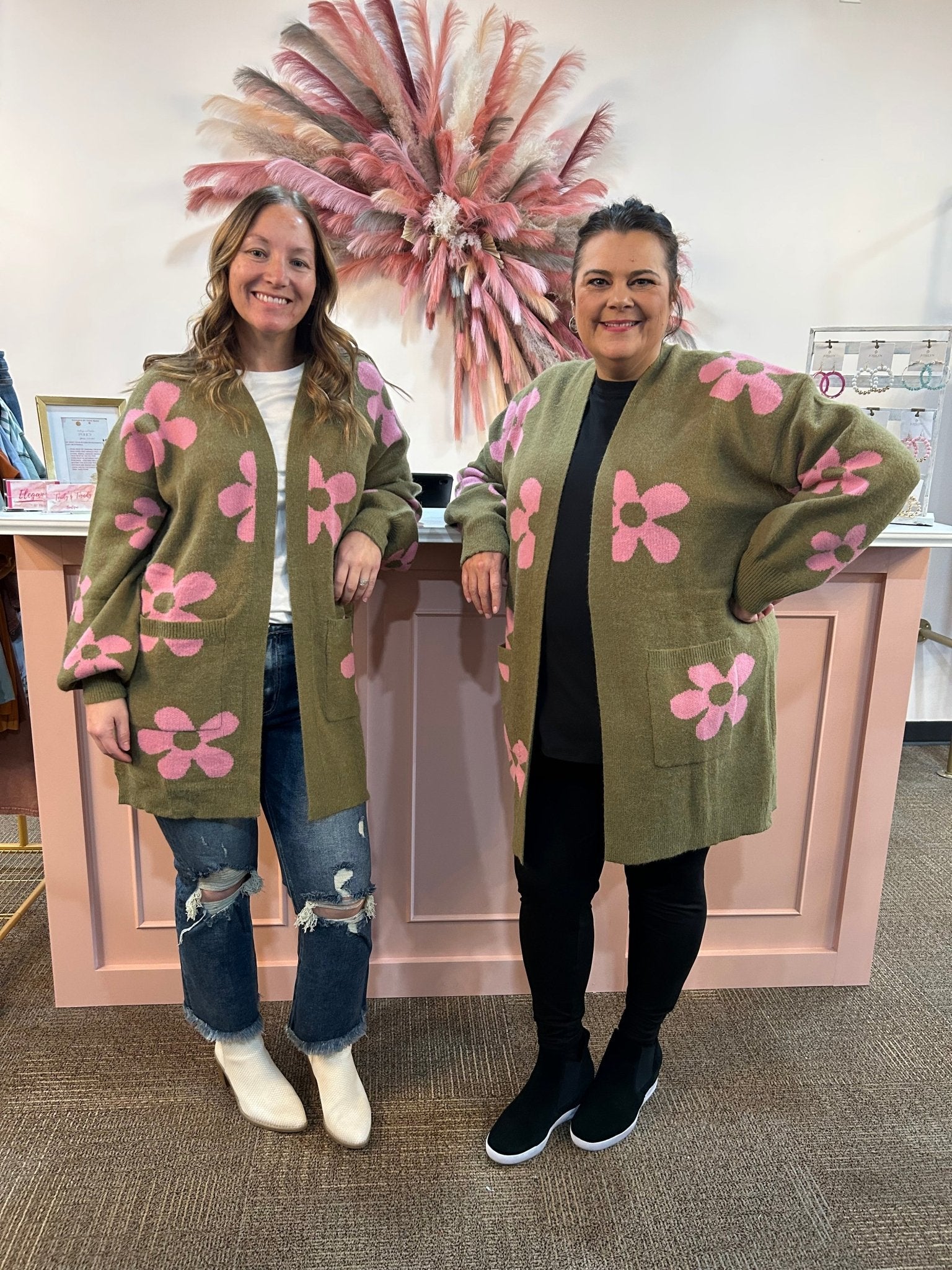 This flower print knit cardigan with drop shoulder, long sleeves and front pockets is a must for the winter. The flowers will have you looking forward to the blossoms of spring.