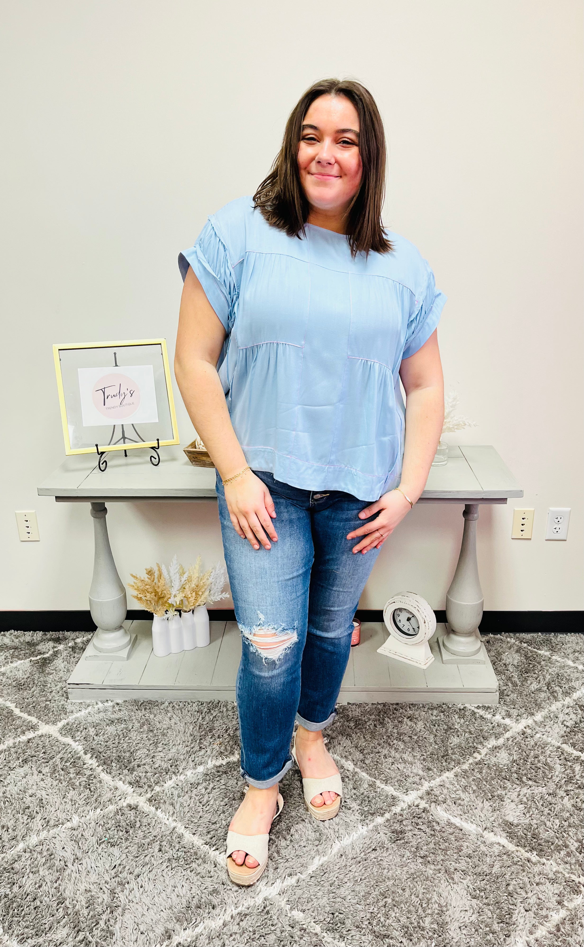 Float into style with our Boatneck Babydoll Top! This sky blue top features a loose fit and short sleeves for ultimate comfort and a playful look. A must-have for your wardrobe, this top is perfect for any casual occasion.
