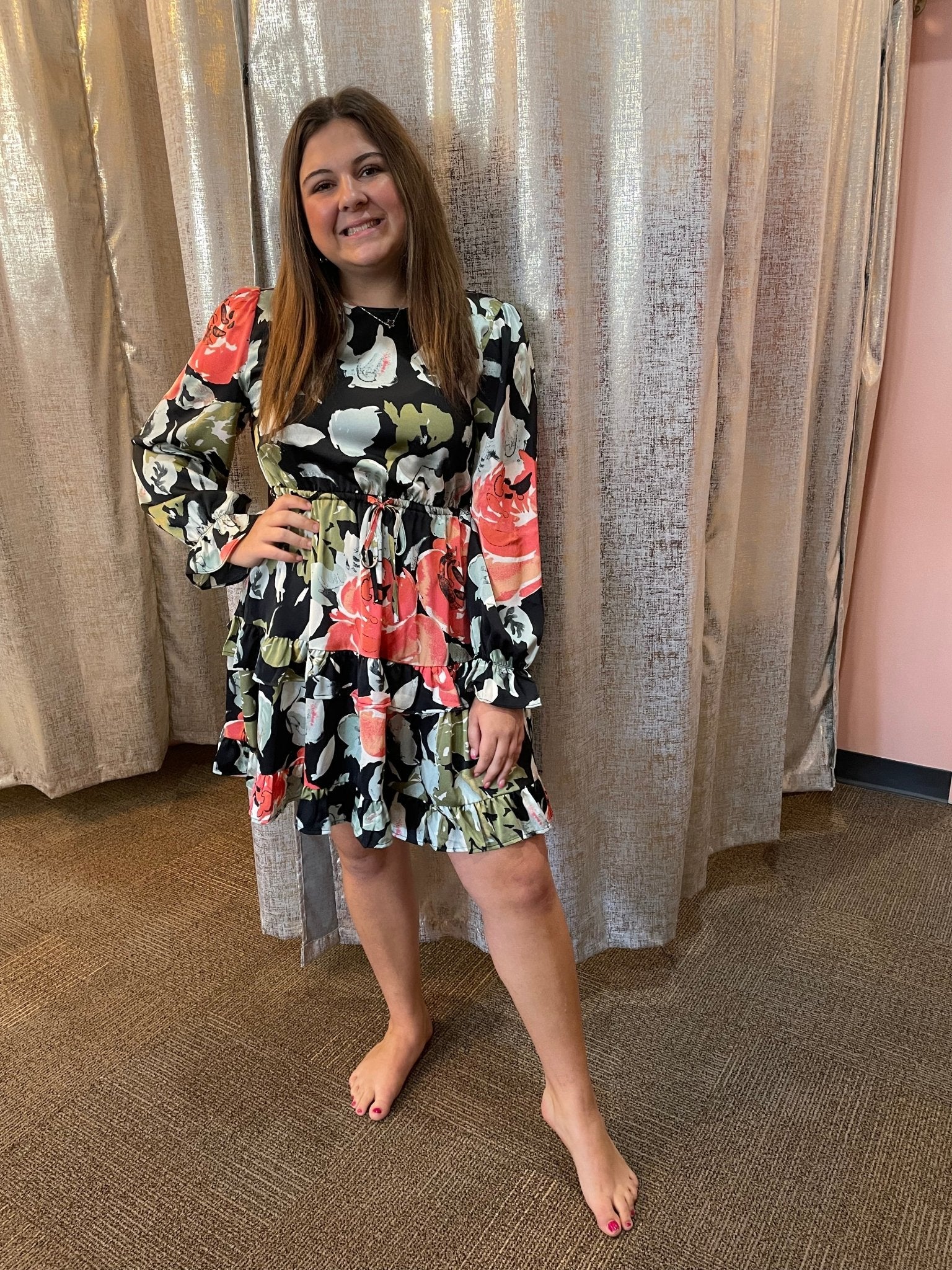 This beautiful satin flower dress will have you looking bold and beautiful!