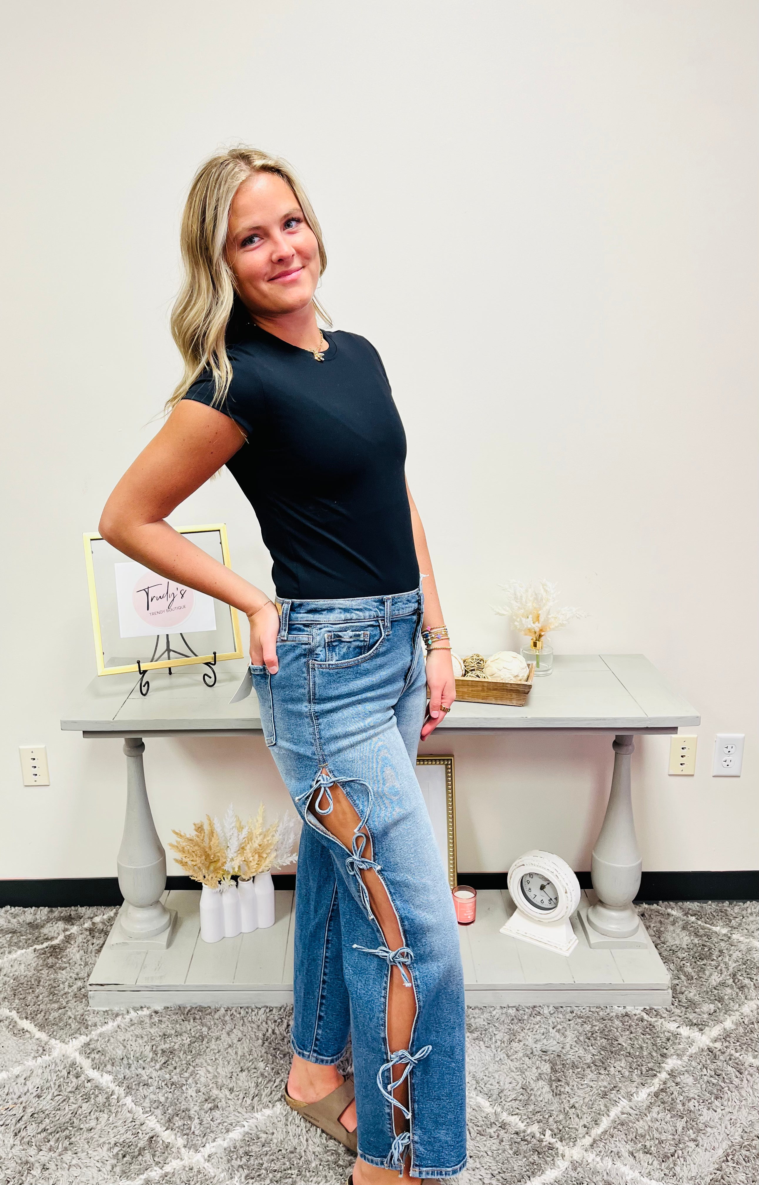 Introducing the Cello MR Baggy Dad Bow Jeans, the perfect combination of comfort and style. These mid-rise jeans feature a unique baggy dad fit and a side self tie, adding a touch of playfulness to any outfit. So go ahead, give your wardrobe a quirky edge with these trendy jeans!