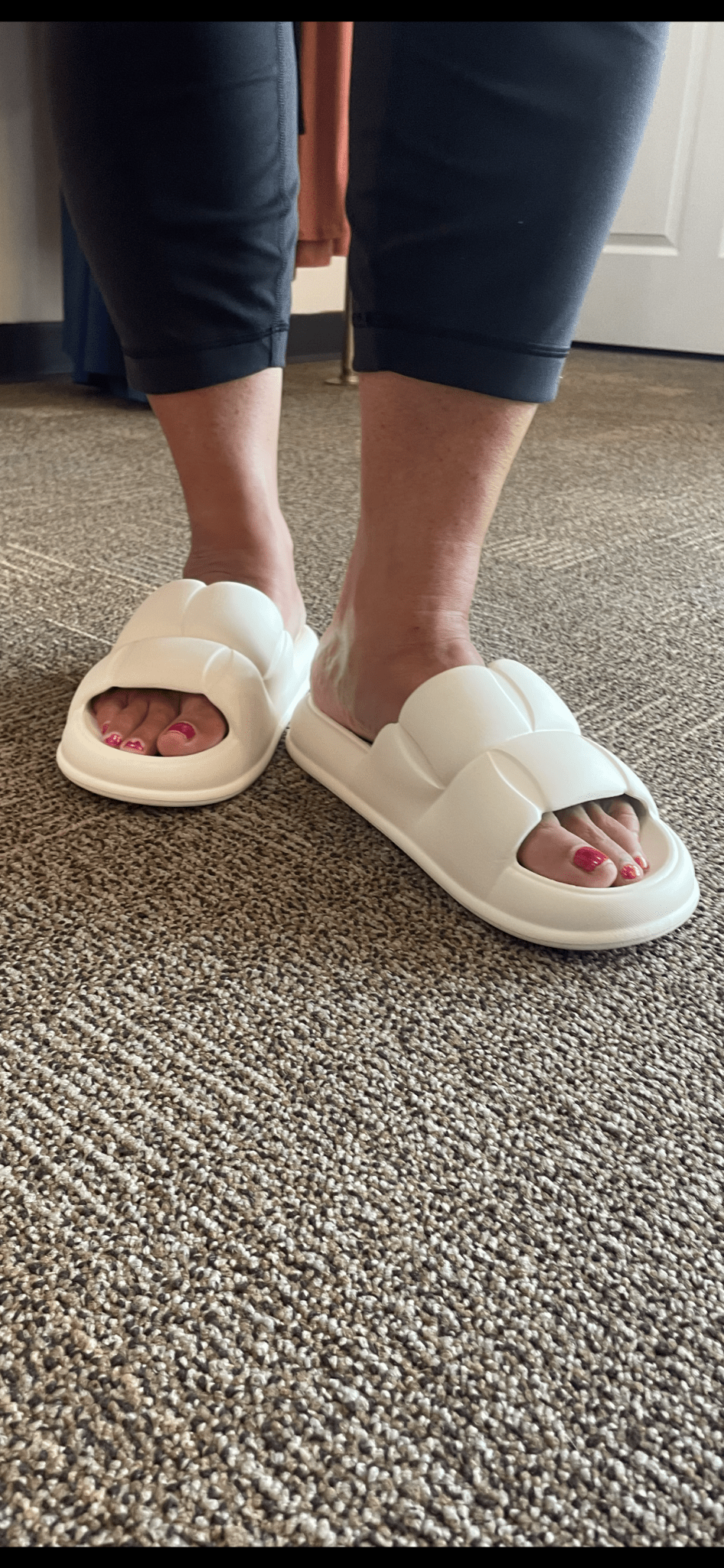 A chunky weaved non slip slippers are made of lightweight high quality EVA material. Non slip, prevent from slipping. They are soft, light weight, comfortable, and easy to clean.