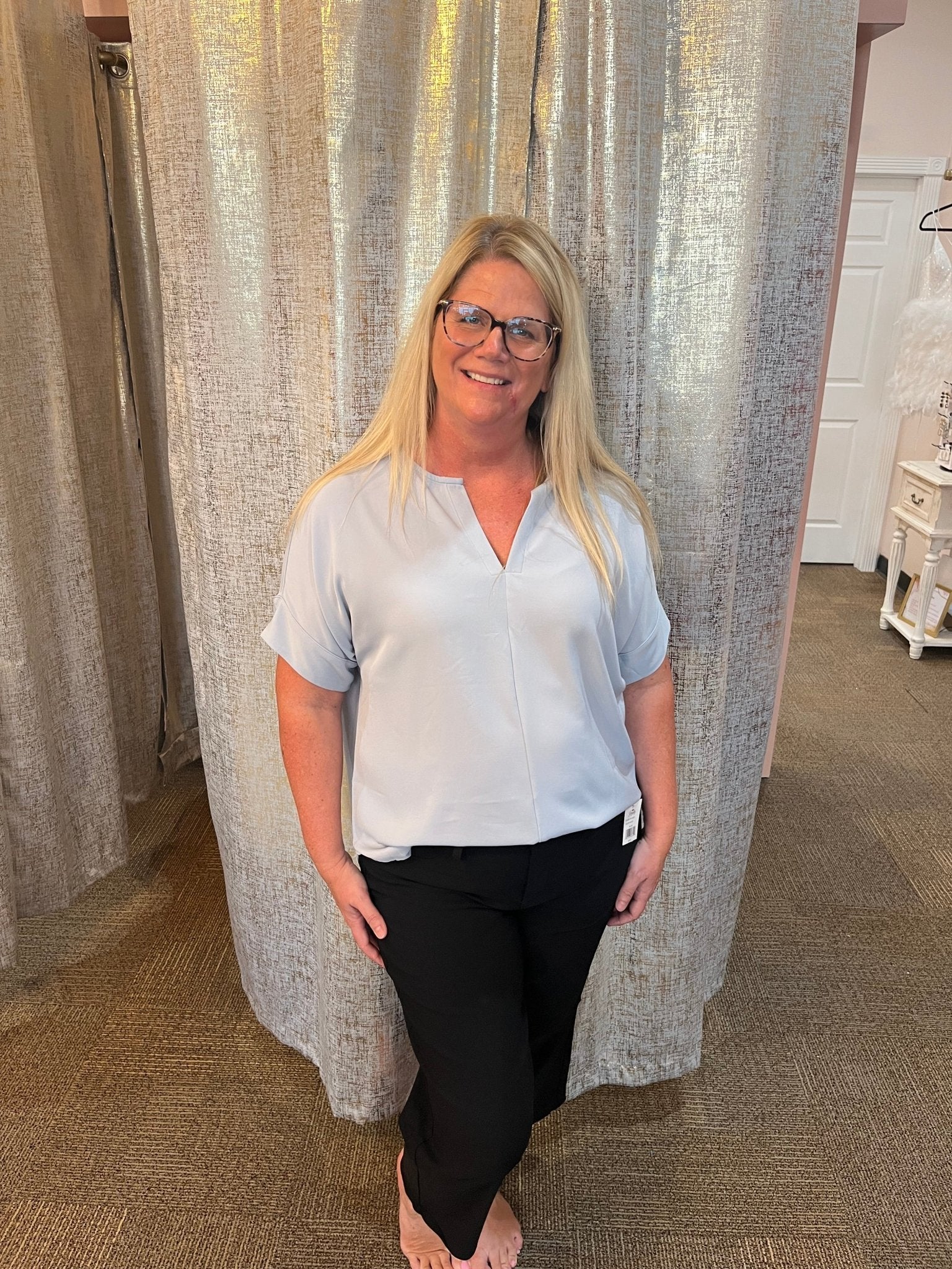 HEAVY WOVEN SPAN SPLIT NECK SHORT SLEEVE TOP - BEST QUALITY WOVEN WITH SPANDEX