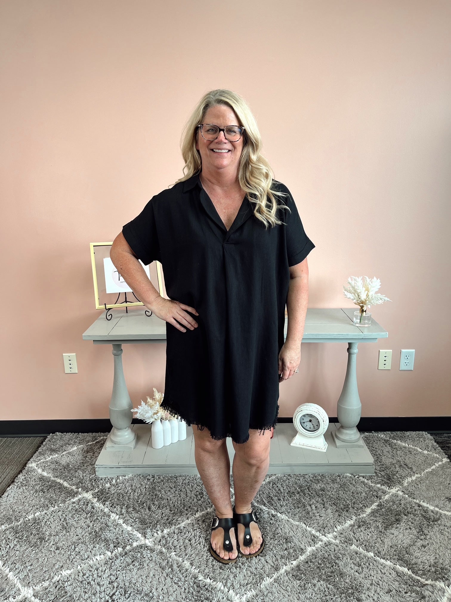 Take on any adventure with fearless style in our Linen Frayed Dress. Made from breathable linen, this shirt dress features a frayed hem for a touch of edgy charm. Perfect for all your escapades, this dress will keep you cool and stylish.
