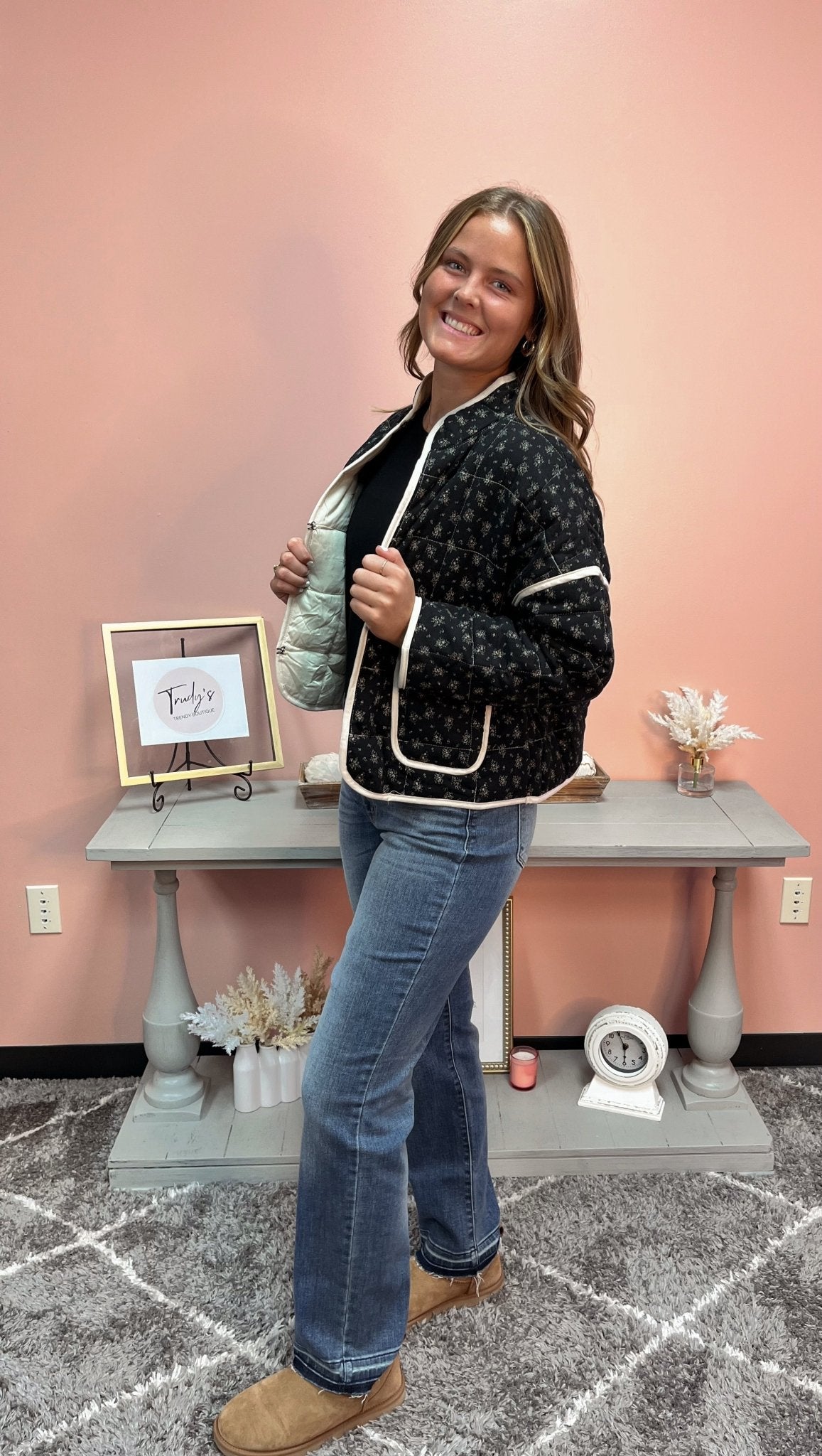 Get ready for compliments with our Floral Print Quilted Jacket! Featuring a trendy stand collar, eye-catching floral print, and convenient front pocket, this jacket is the perfect blend of style and function. The contrast binding adds a touch of uniqueness that will make you stand out from the crowd.