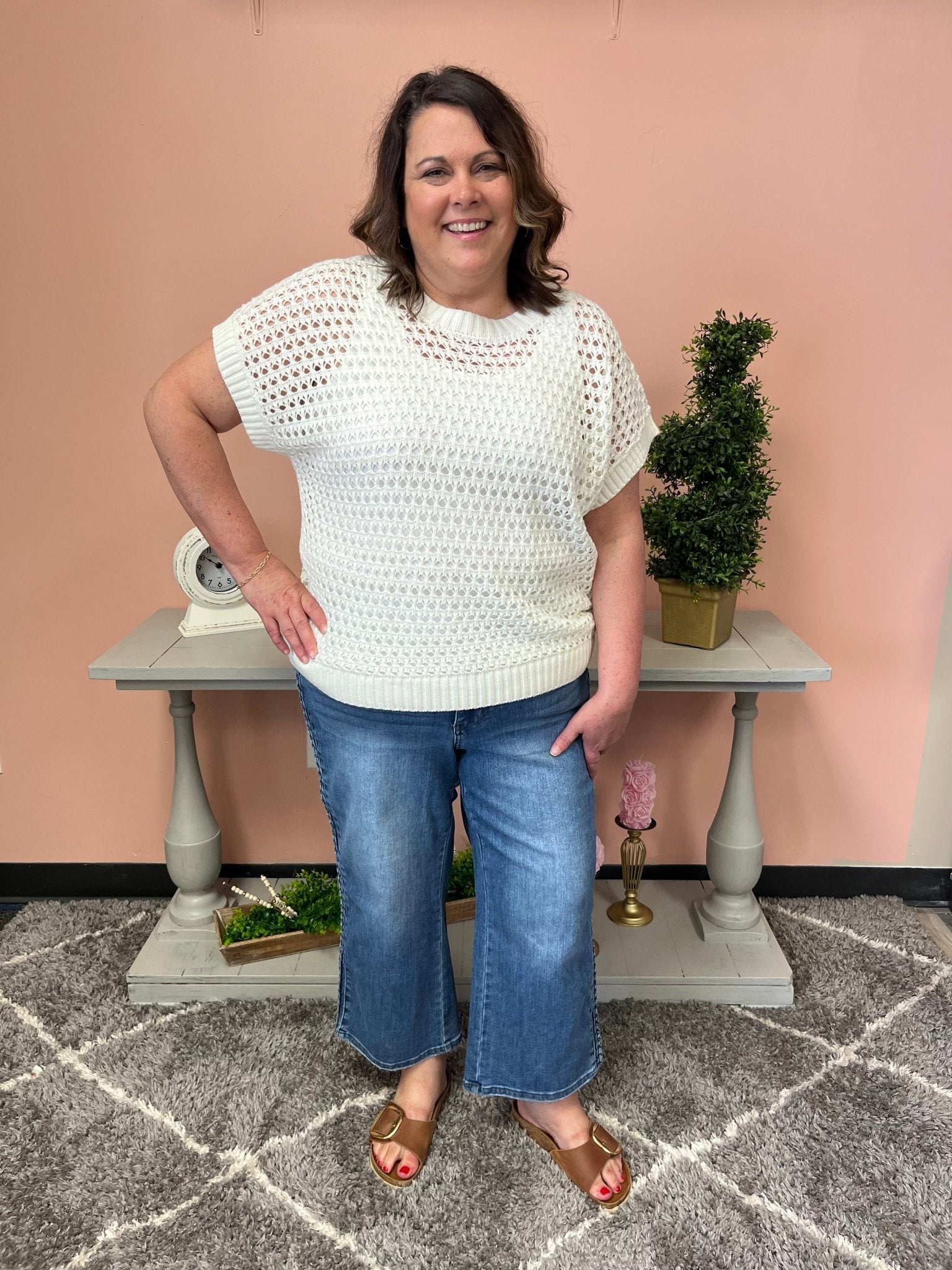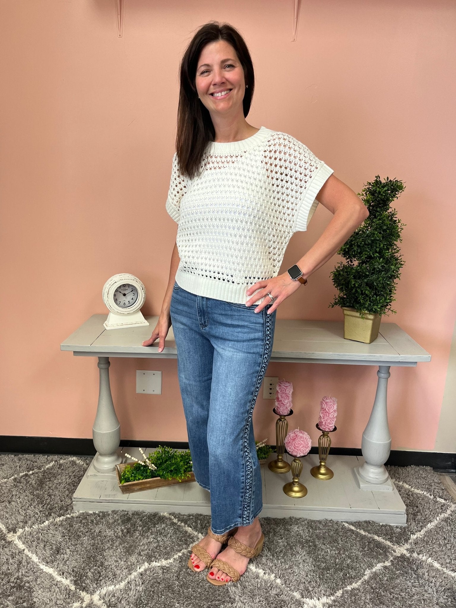 Unleash your playful side with the Judy Blue HW Braided Wide Crop. This stylish crop features a braided design for a unique twist on a classic look. Perfect for adding some fun to your wardrobe and turning heads wherever you go!