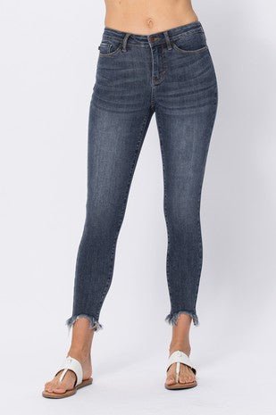 Judy Blue Mid Rise Shark Bite Hem Skinny/Curvy