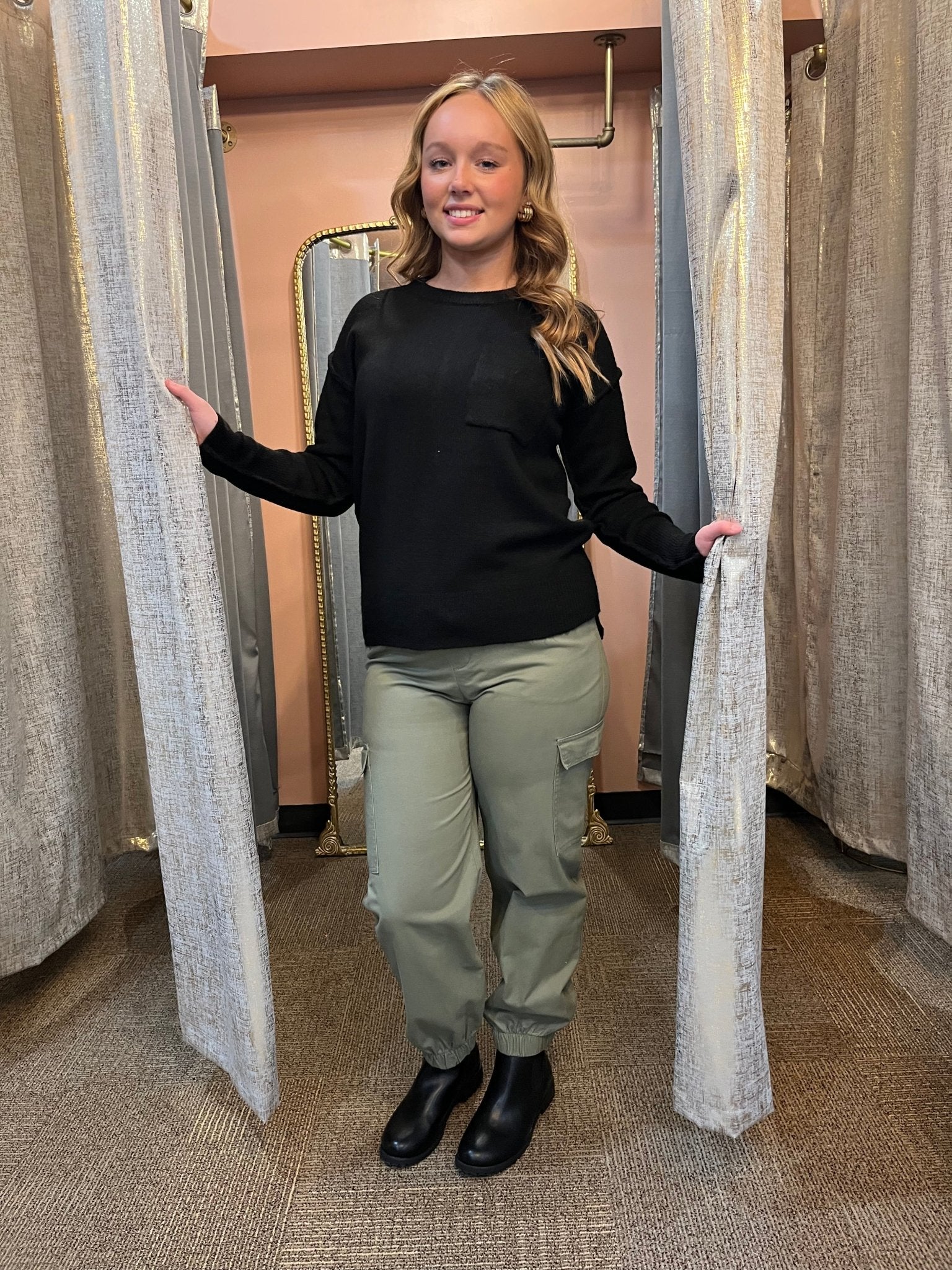 These cotton joggers are comfy and trendy! The have cargo pockets and are a high waist fit.