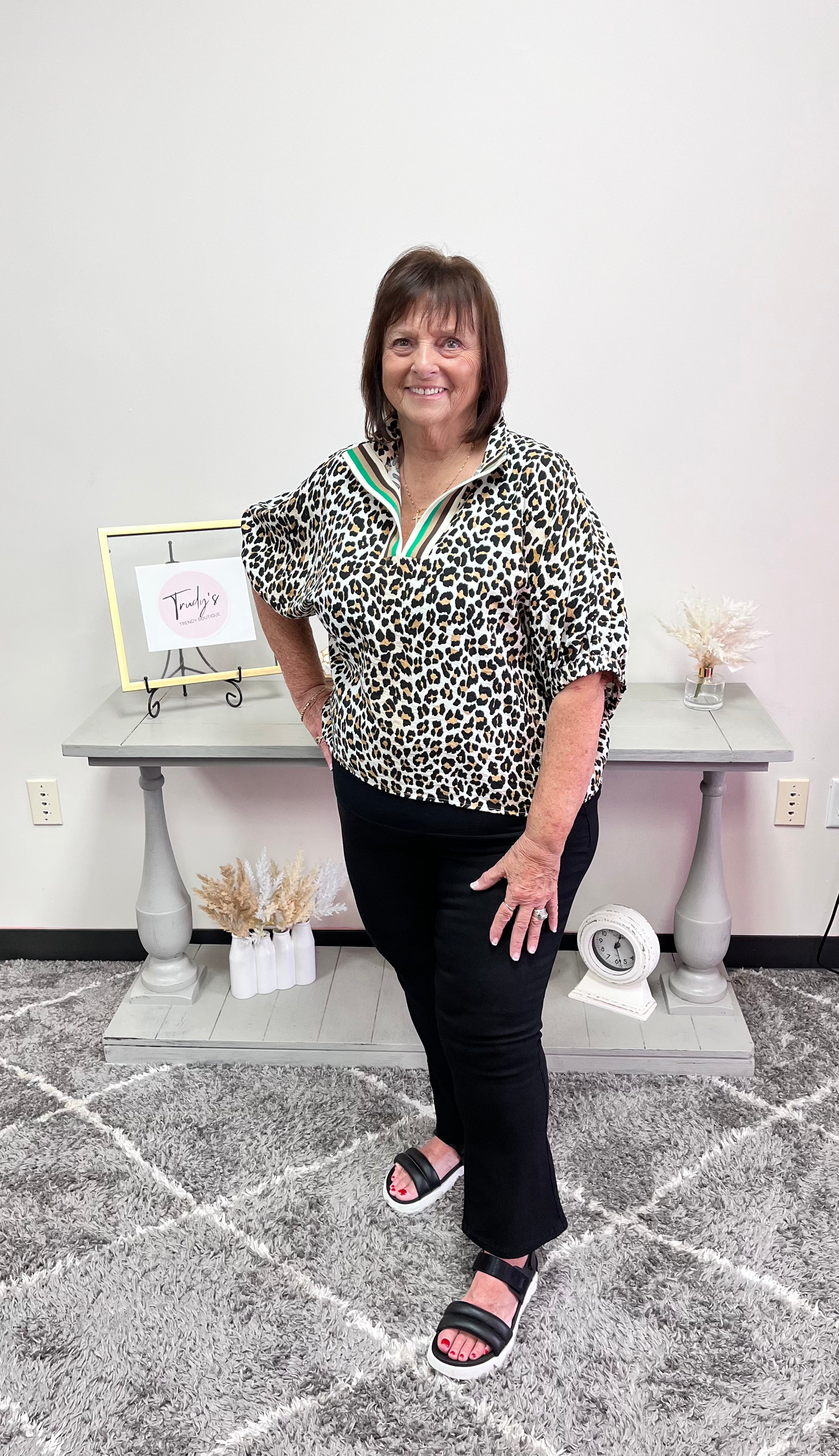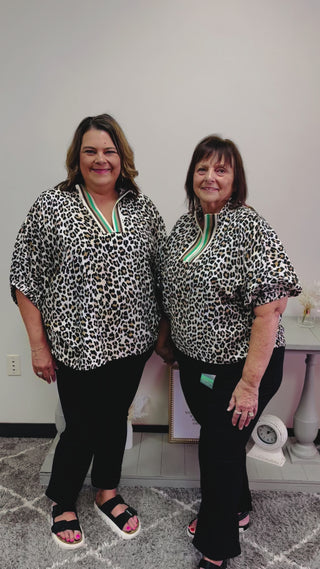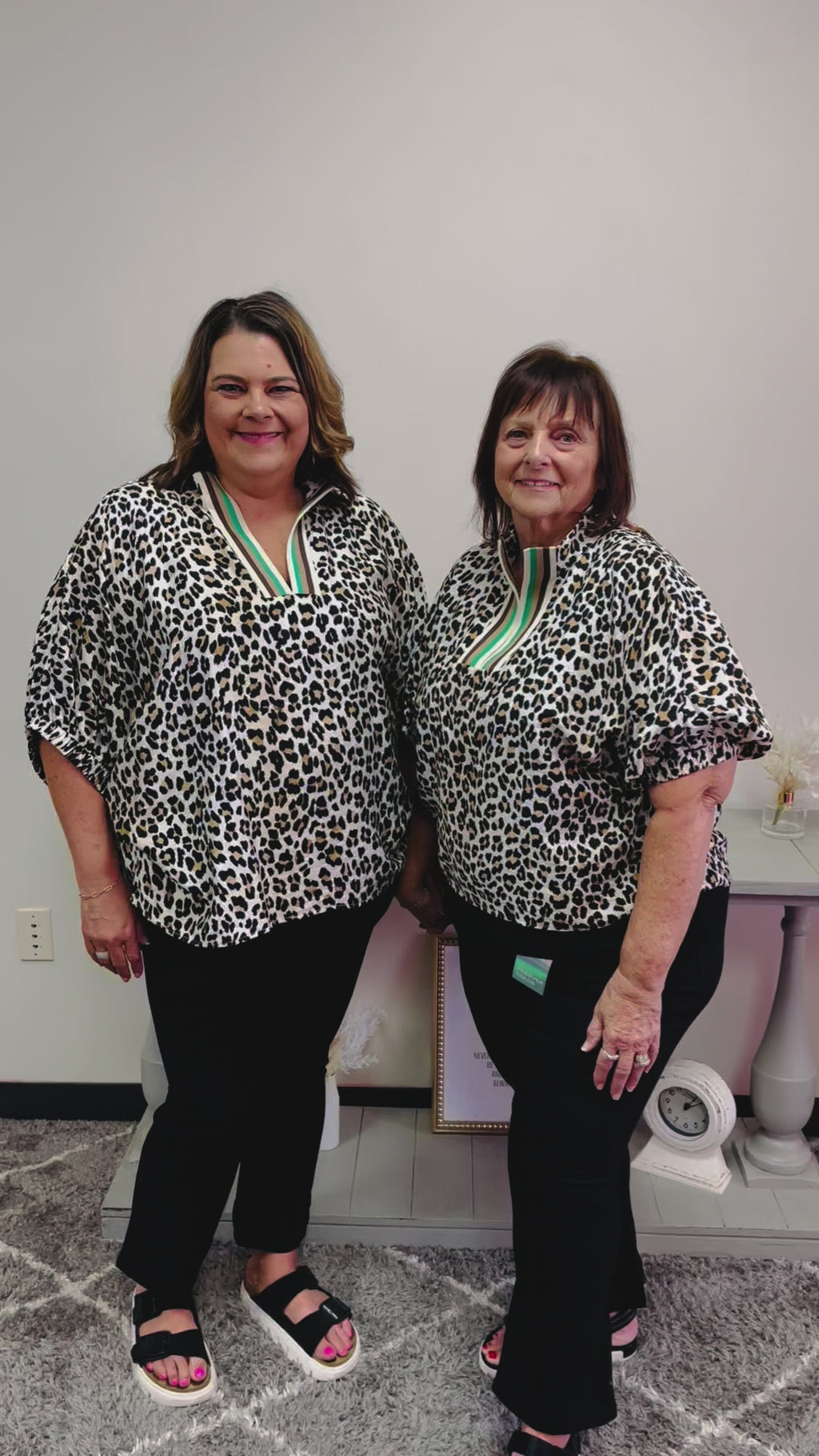 Be fierce all day long in the Leopard All Day Top. Its high neck, elasticated sleeve bands, and multicolor rib band split neck add a playful touch to the classic leopard print. Lightweight and non-sheer, this top is perfect for any occasion.