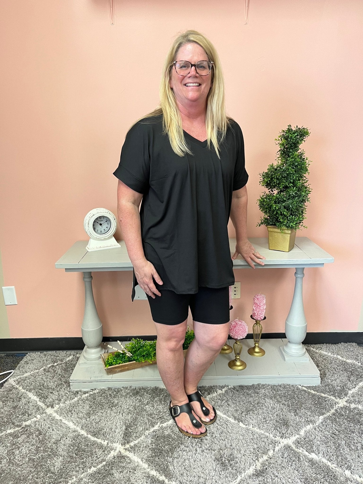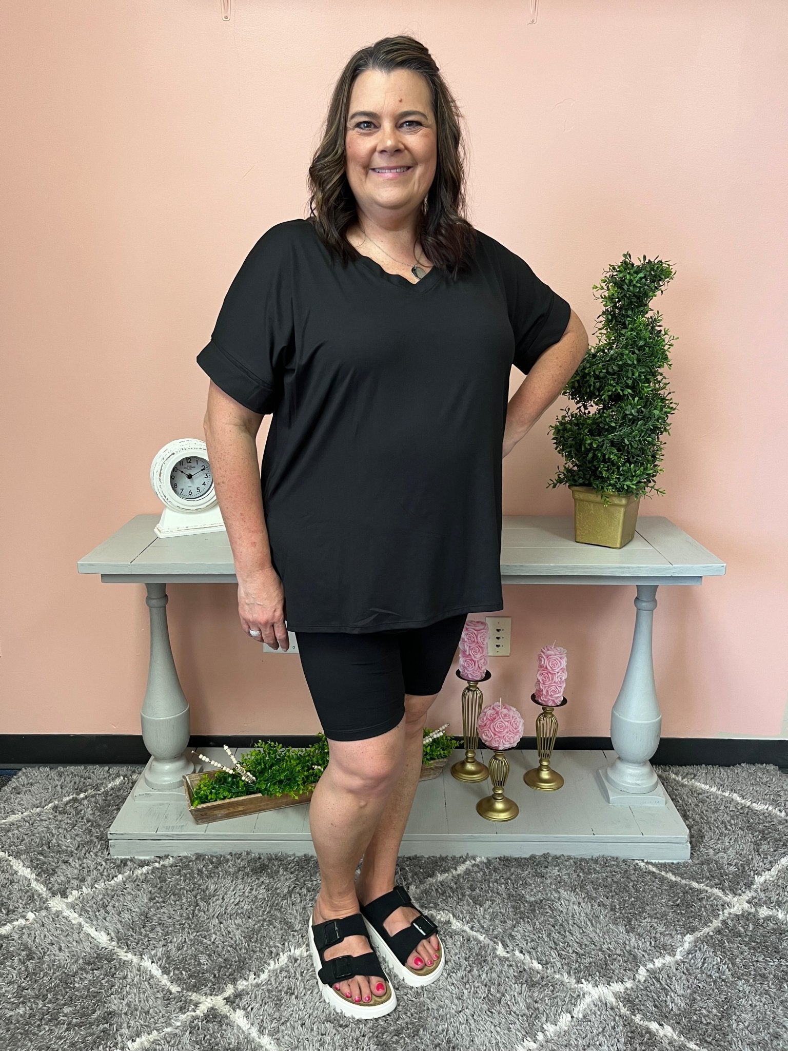 Get ready to "lounge" in style with our Lounge Around Bike Short Set! The hi low hem top and biker shorts 2pc set is perfect for a day of relaxing or running errands. No need to sacrifice fashion for comfort with this versatile and playful set.