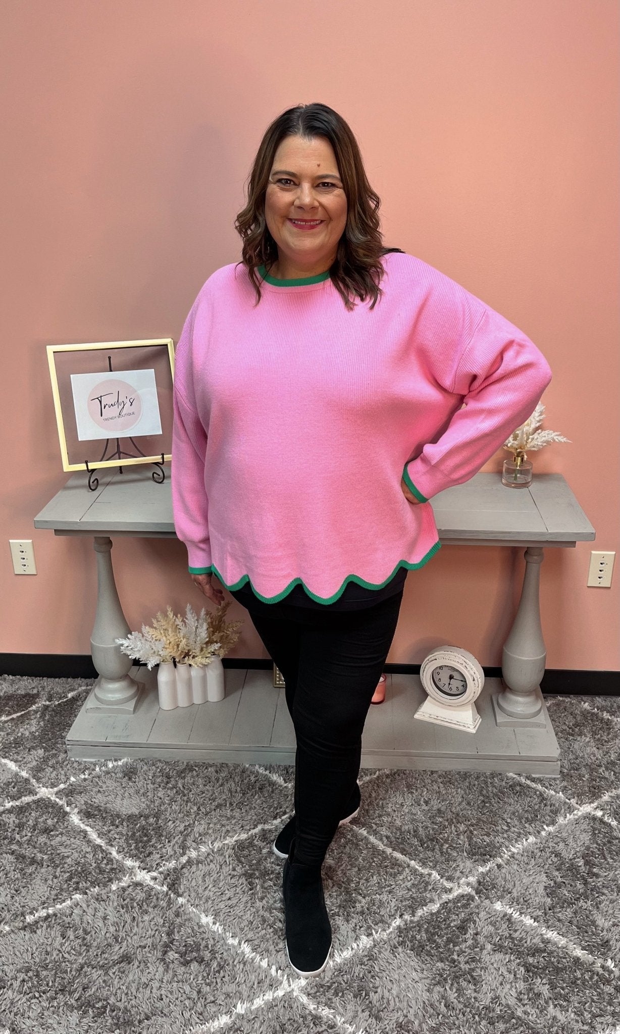 Stay cozy and stylish with our Make Your Own Way sweater top. This playful long sleeve top features a unique scallop hem and contrasting edge, making it the perfect addition to your wardrobe. Stand out and make your own way with this versatile and trendy piece.