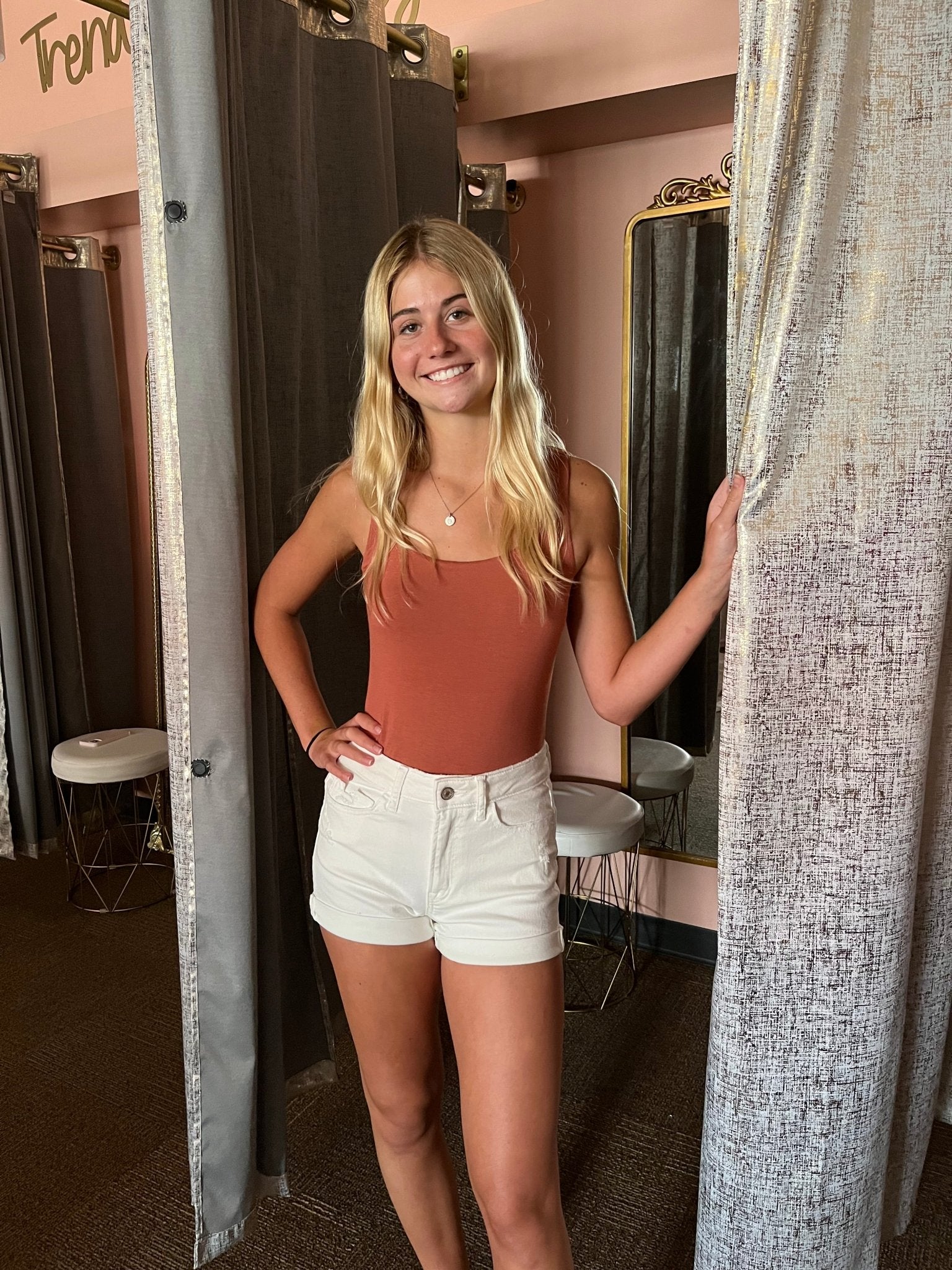 This butter soft, bodysuit will look pair well with in jumpsuit, skinny shorts/jeans or layering piece. You will not regret putting this on!