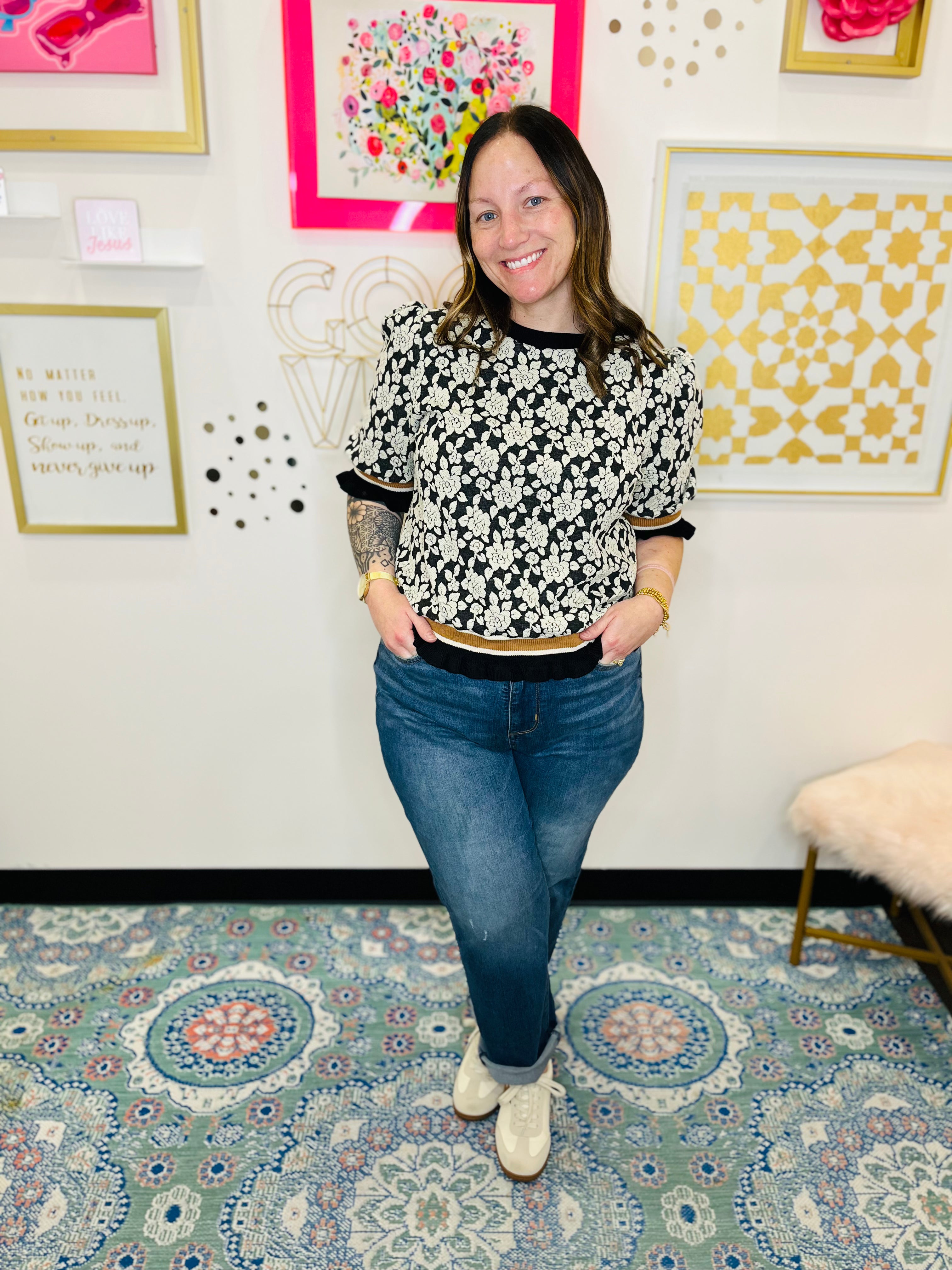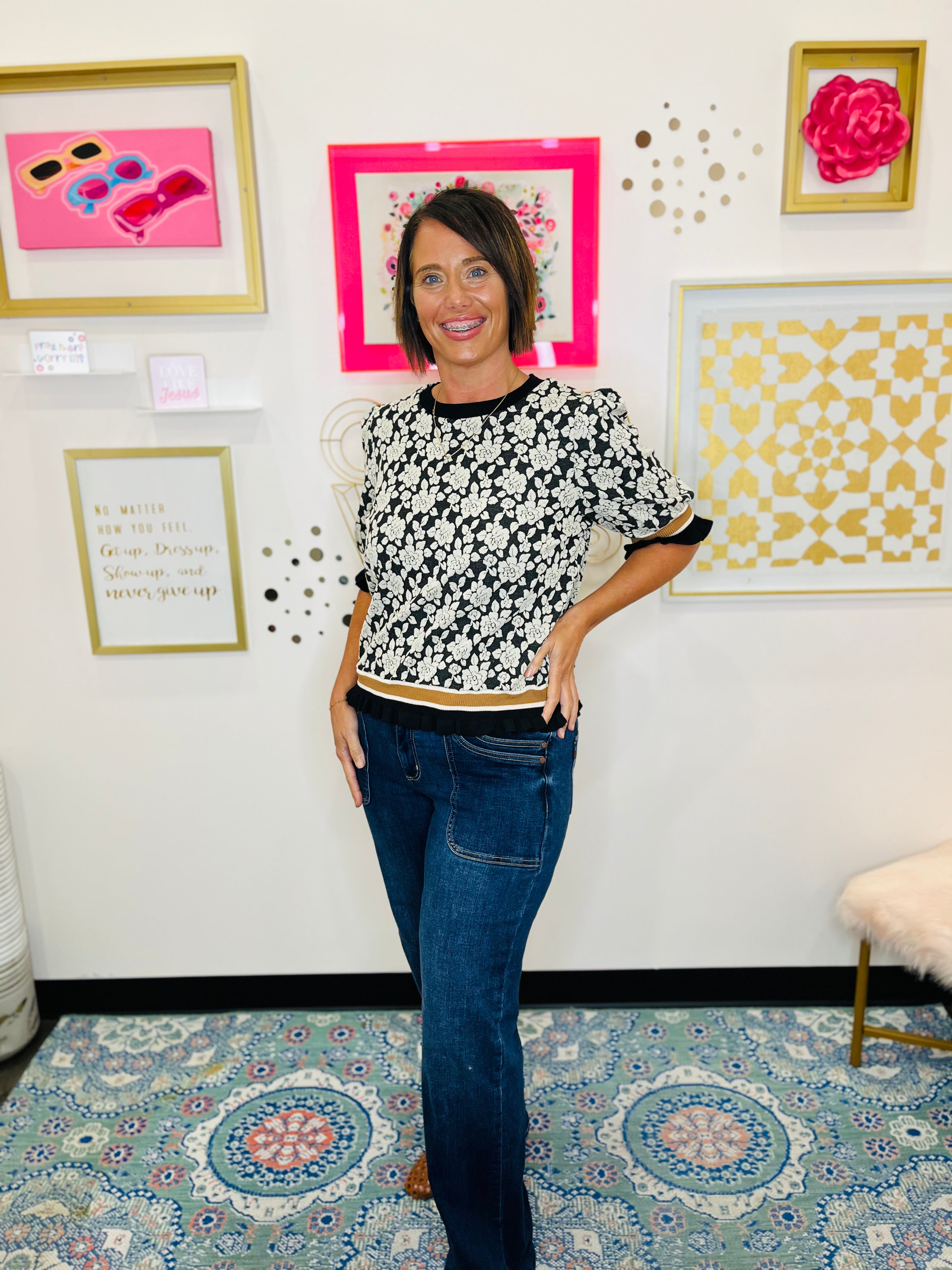 The Rosette Puff Knit Top is a feminine, boutique-inspired statement piece. Crafted from a soft textured rose knit, this top features contrast banded puff sleeves for added dimension and a flattering silhouette. Perfect for pairing with skirts, jeans, or tailored pants, it offers a chic, elevated look that transitions seamlessly from casual outings to polished occasions.