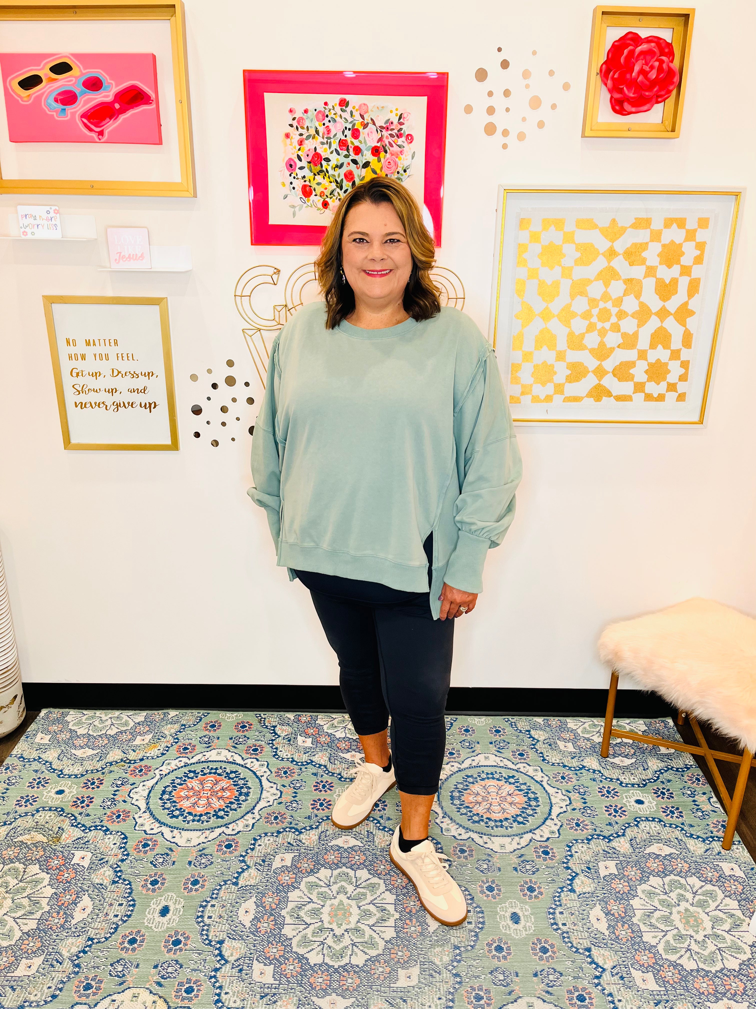 The Seamline Oversized Sweatshirt is a modern take on relaxed comfort. Crafted from soft French terry knit, this long sleeve sweatshirt features an oversized fit and exposed seam detailing for a subtle, edgy finish. Perfect for layering or wearing on its own, it pairs effortlessly with leggings, jeans, or wide-leg pants, offering a boutique-inspired, casual-chic look that combines style and cozy everyday wear.