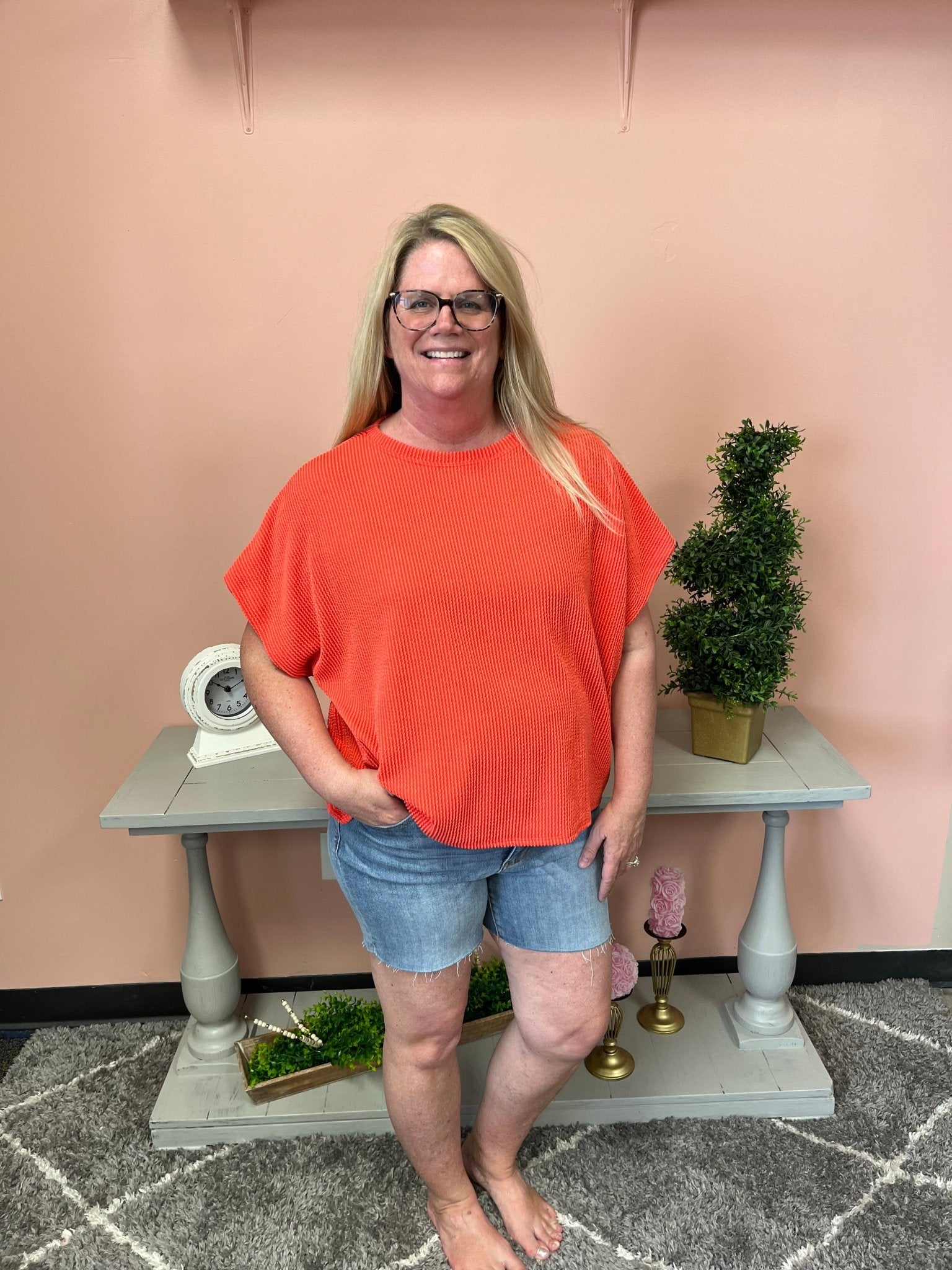 Get ribbed in all the right ways with our Shop The Look Top. This short sleeve top adds a touch of texture to your outfit, while keeping you cool and comfortable. Say goodbye to boring basics and hello to stylish simplicity!