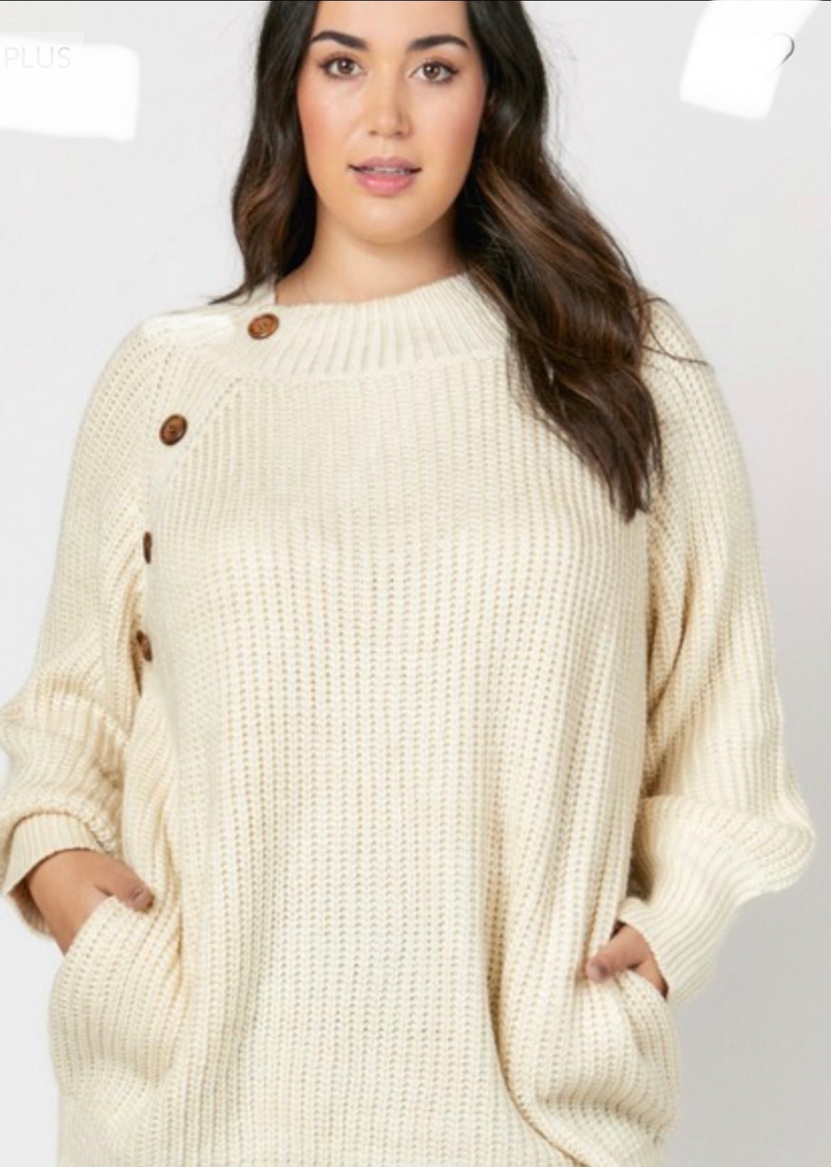 This sweater will have you cozy for the winter. The brown buttons give it a classy look! And guess what.....this amazing sweater has pockets!!!!