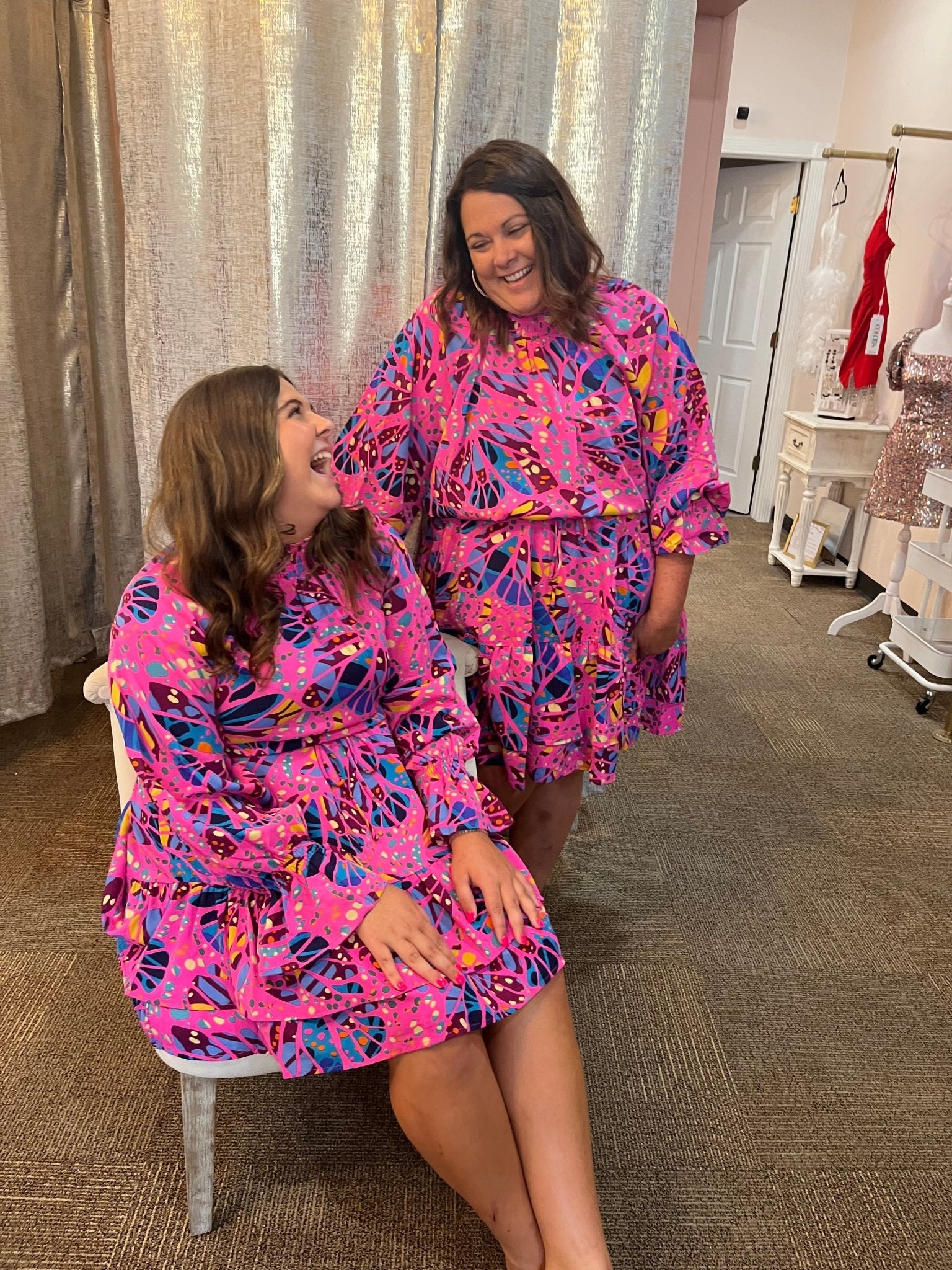 Floral print smocked neck tiered ruffle mini dress featuring elastic waistline, front tie strap and long sleeve