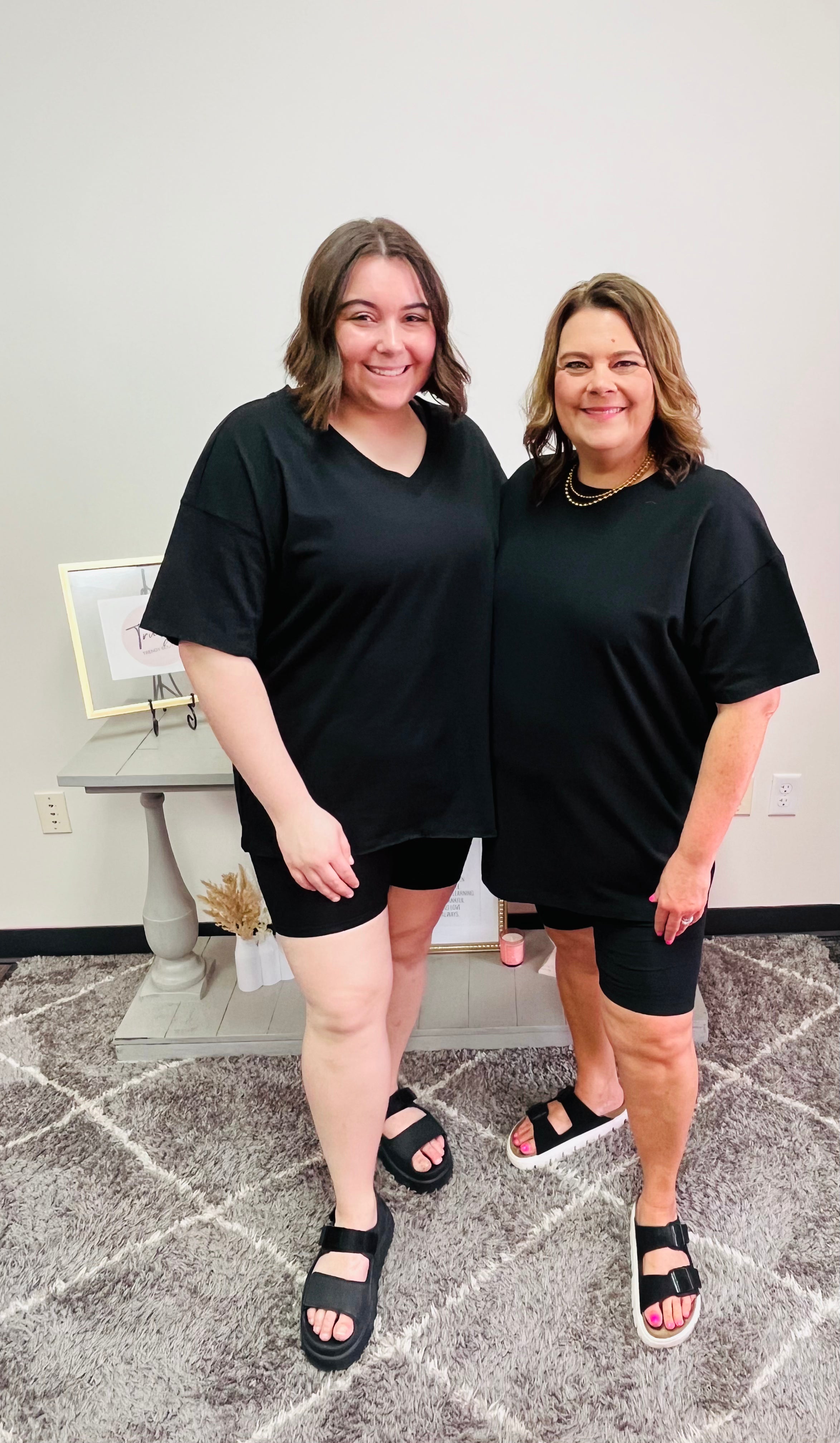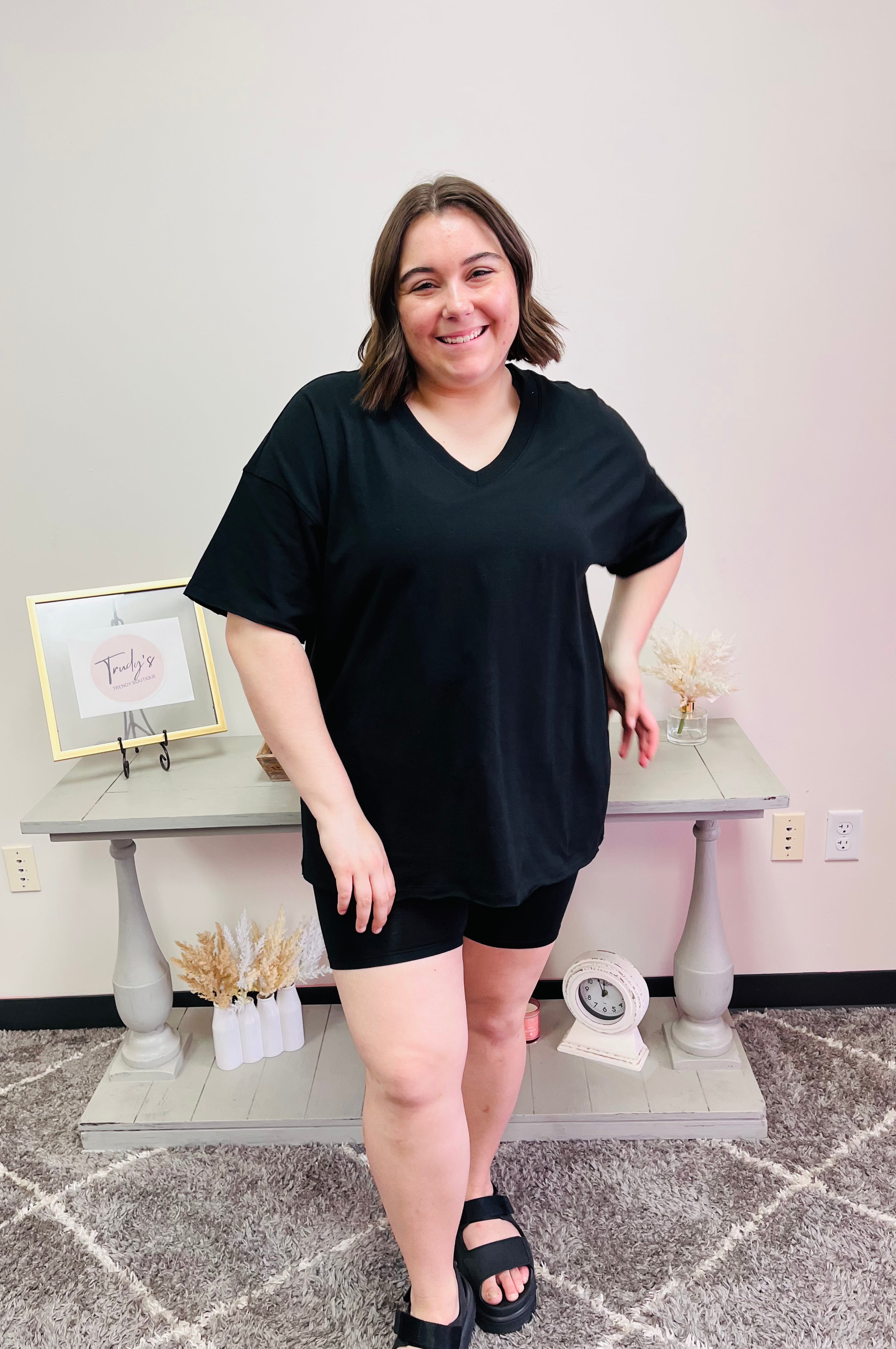 Ride in style with this biker short set featuring a comfy cotton v-neck top. Perfect for showing off your fun and playful side (while staying comfortable). Pedal your way to fashion forward fun with this quirky set.