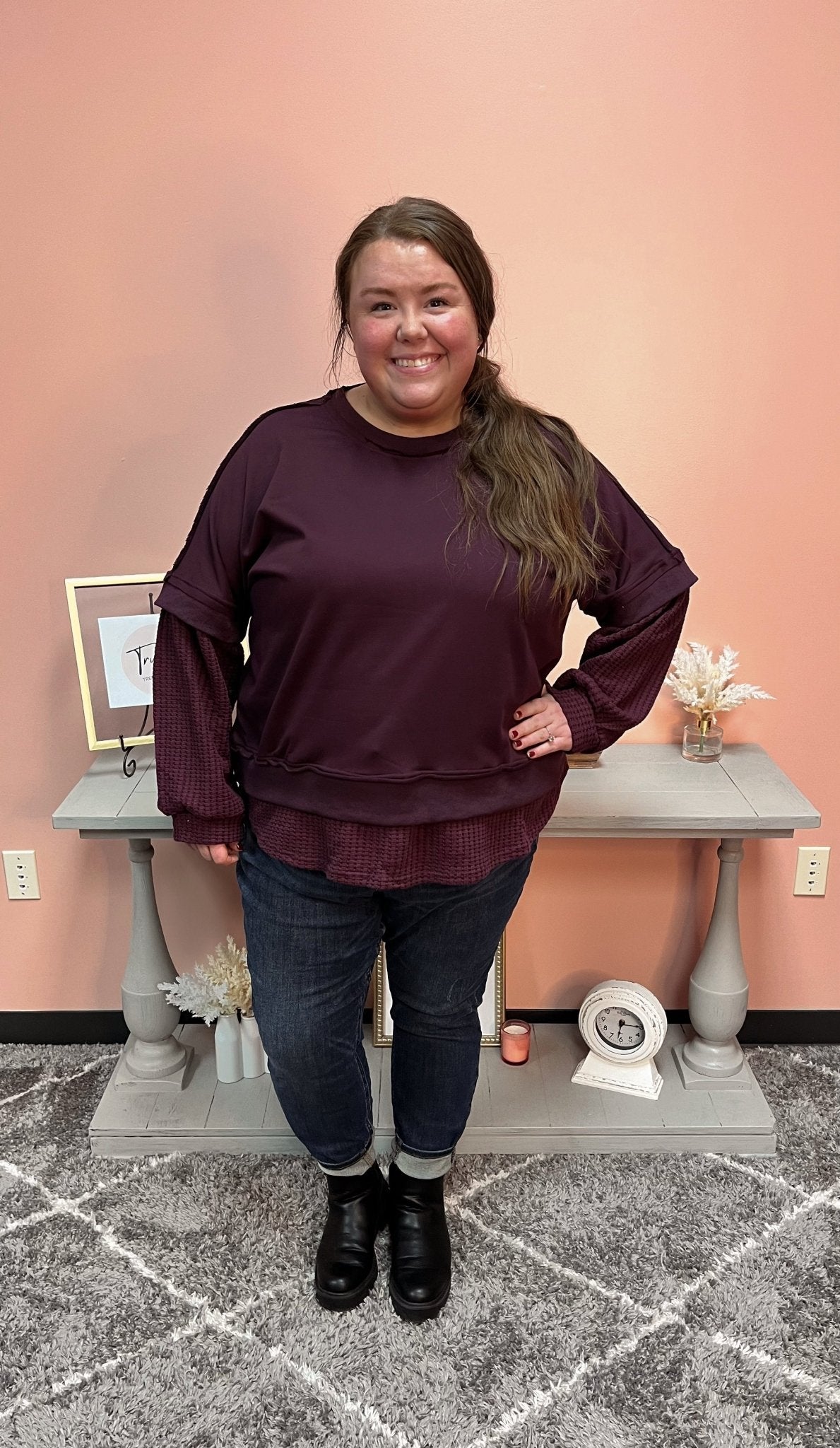 Get cozy in our Vineyard Charm Sweatshirt! Featuring a long sleeve design, this sweatshirt offers the perfect contrast of comfort and style. Perfect for curvy figures, it's the ideal top for any occasion. Add a touch of charm to your wardrobe today!